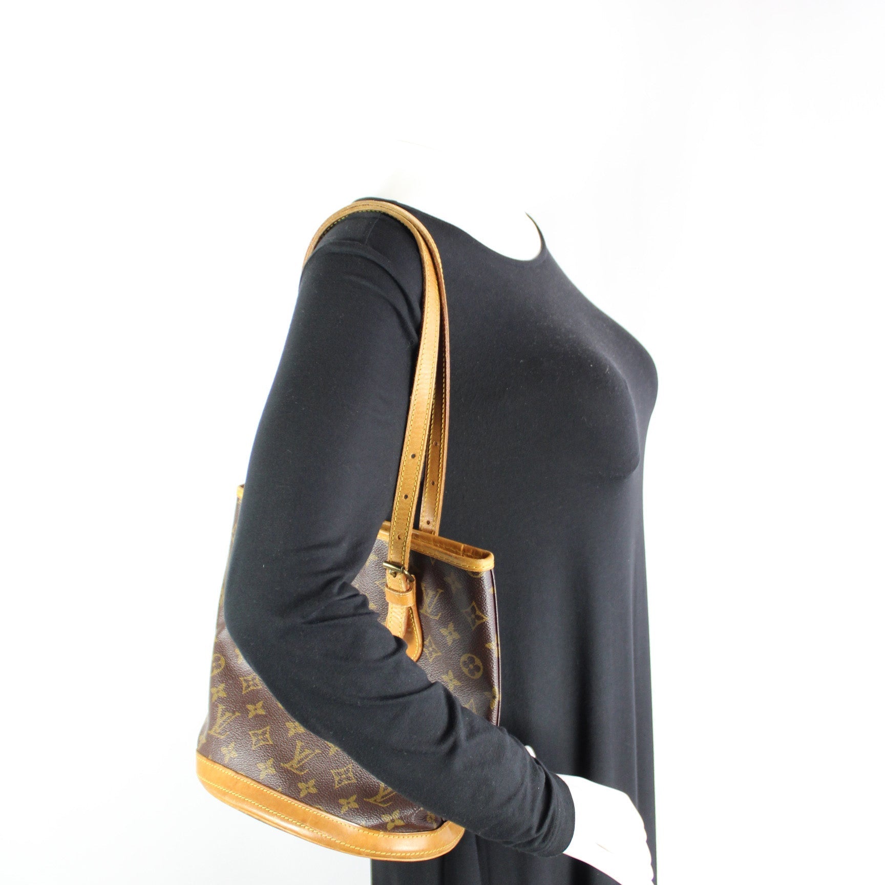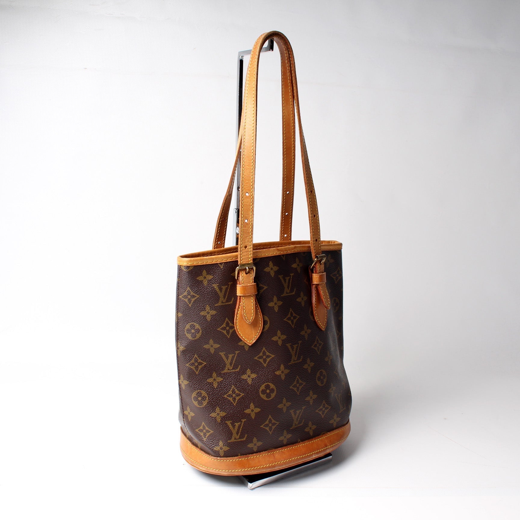 This Louis Vuitton Petit Bucket is guaranteed 100% . The exterior is in the classic Louis Vuitton Monogram coated canvas.