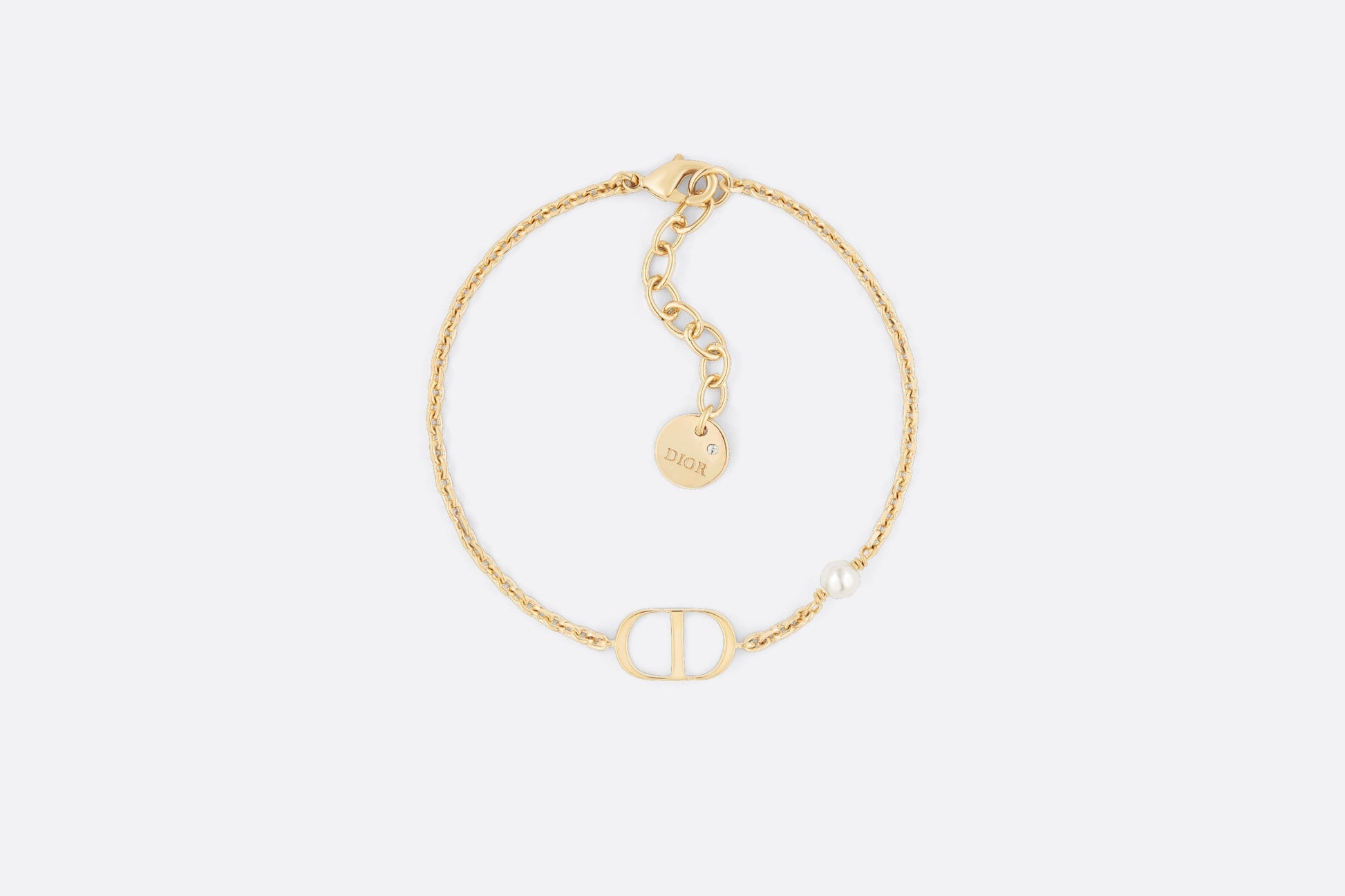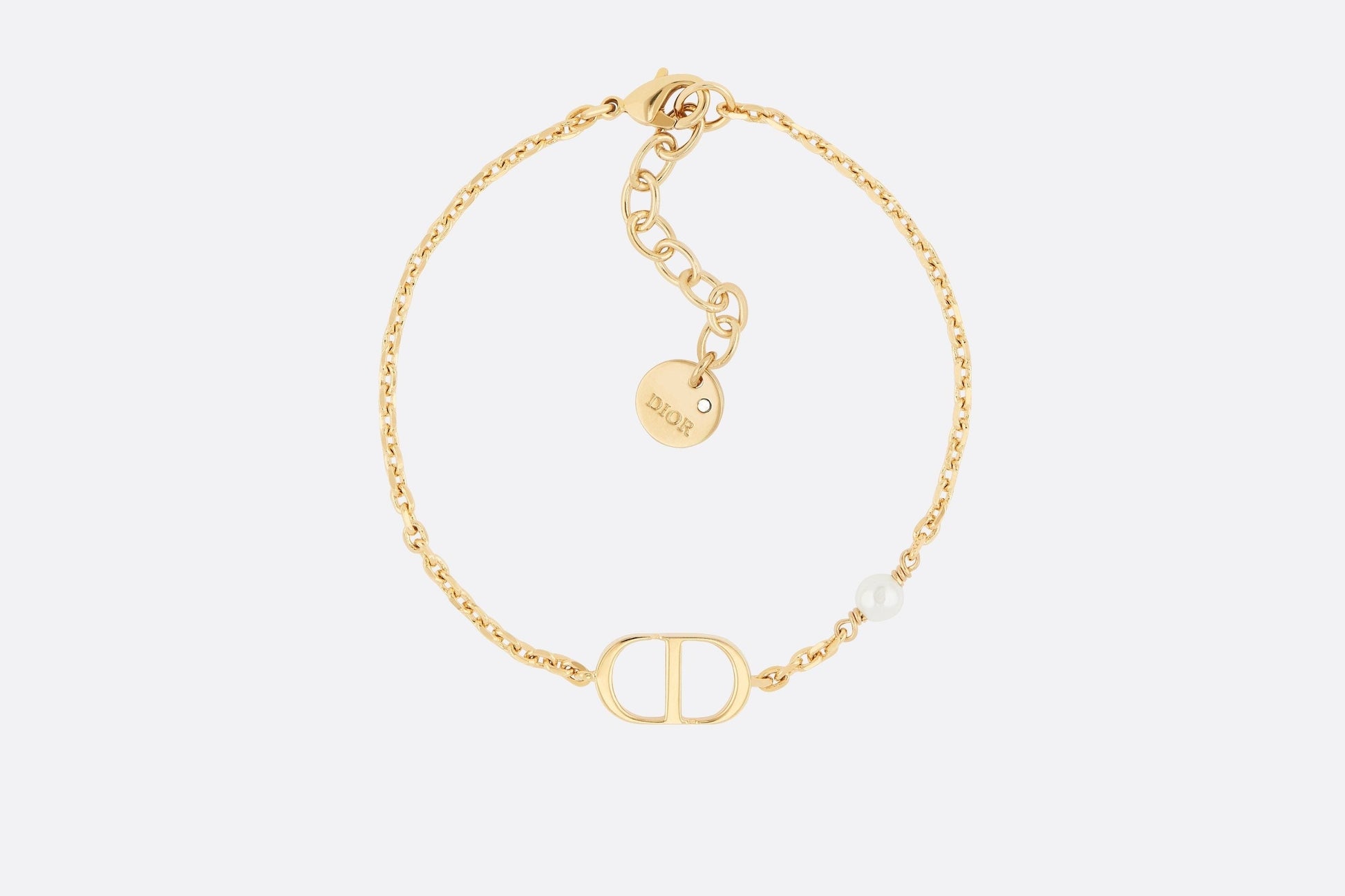 The Petit CD bracelet has an elegant and streamlined aesthetic. The style is comprised of a thin gold-finish metal chain showcasing a 'CD' signature at the center. A small white resin pearl completes the look. Modern and refined, the bracelet may be worn with other Petit CD creations.