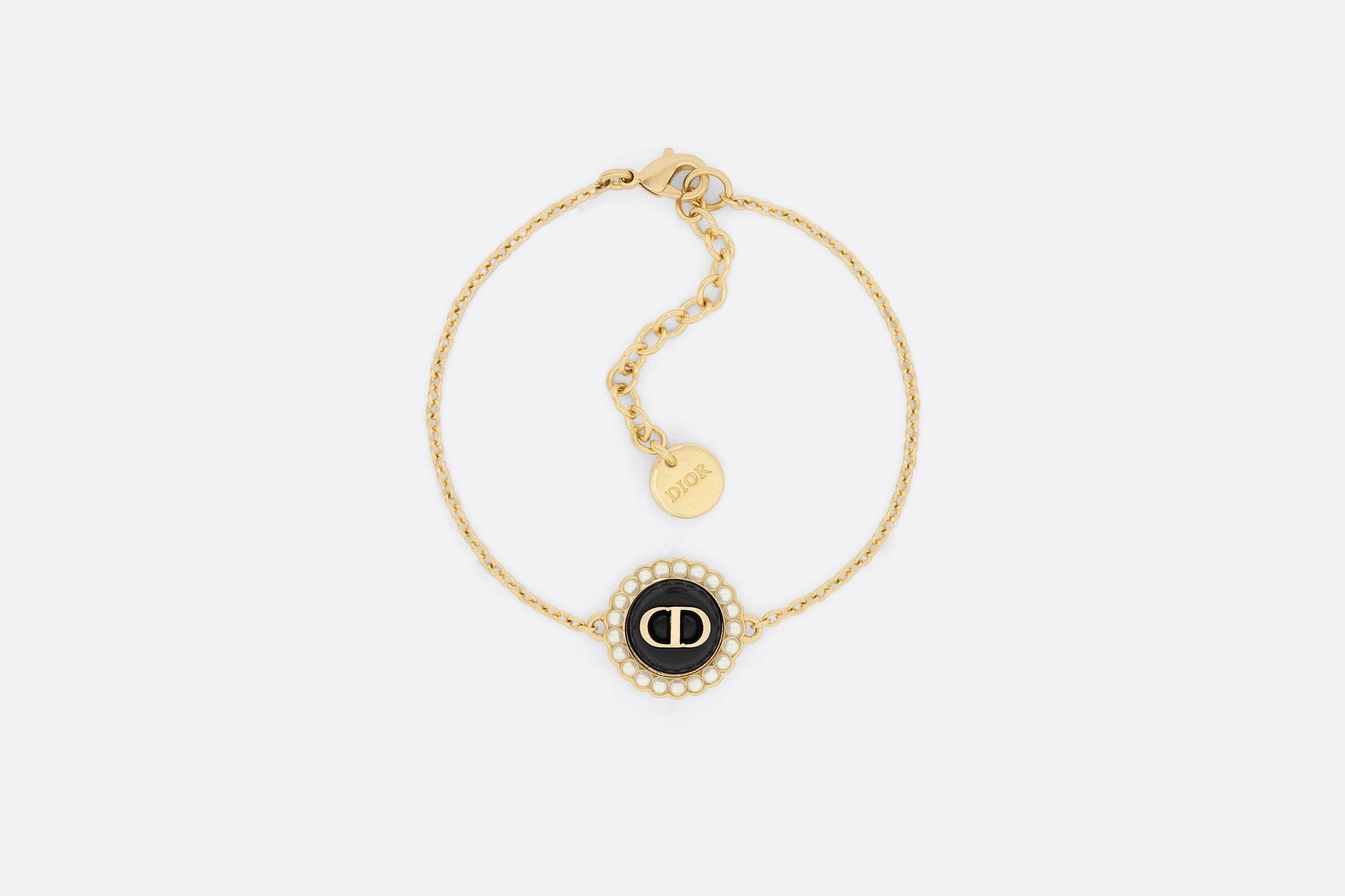 The Petit CD bracelet is an elegant and timeless creation. The thin chain crafted in gold-finish metal showcases a black glass cabochon adorned with the CD signature and delicately encircled by white resin pearls. The sophisticated bracelet can be worn with other creations from the Petit CD line.
