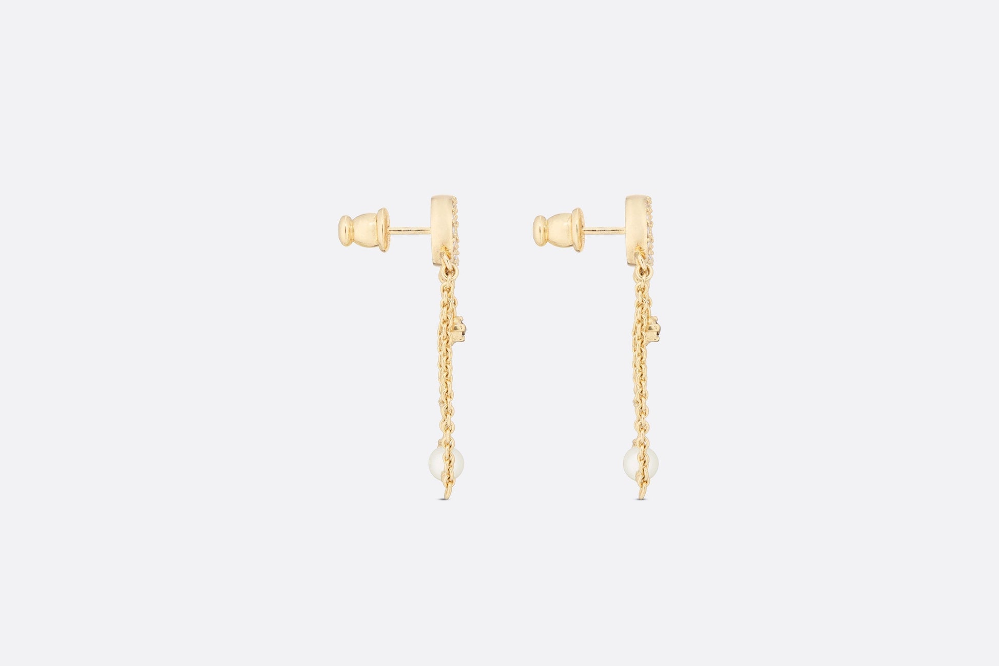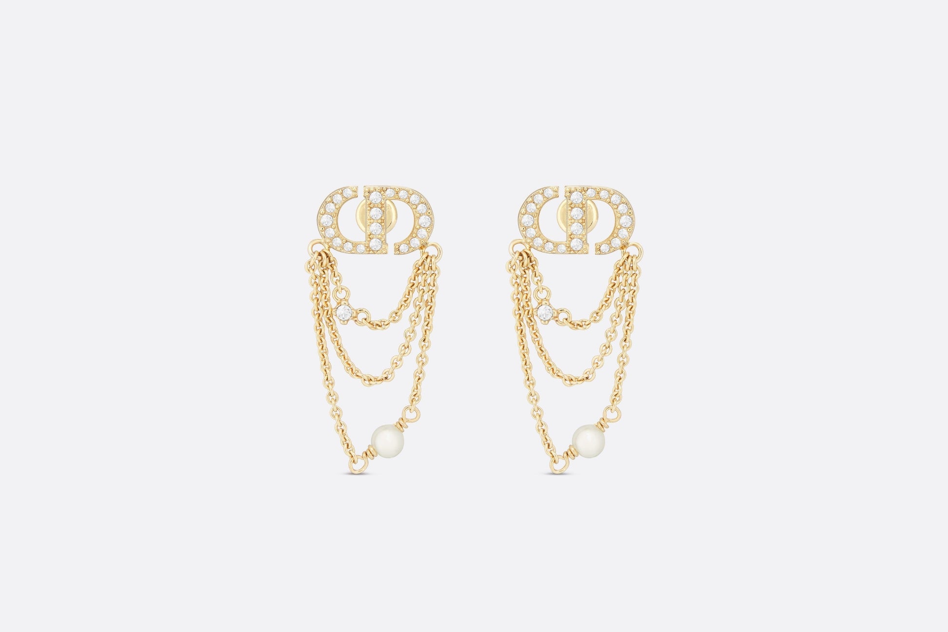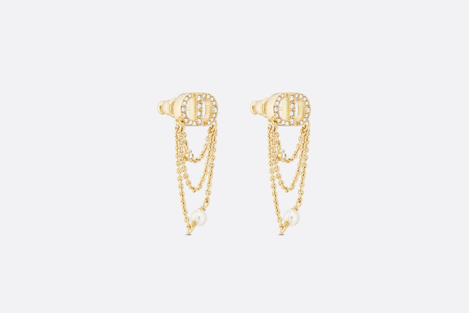 The Petit CD earrings offer an elegant, modern style. The CD signature in a pavé of silver-tone crystals adorns the front of the ear and features suspended chains accented by a crystal and a white resin pearl. The refined earrings can be worn with other Petit CD creations.