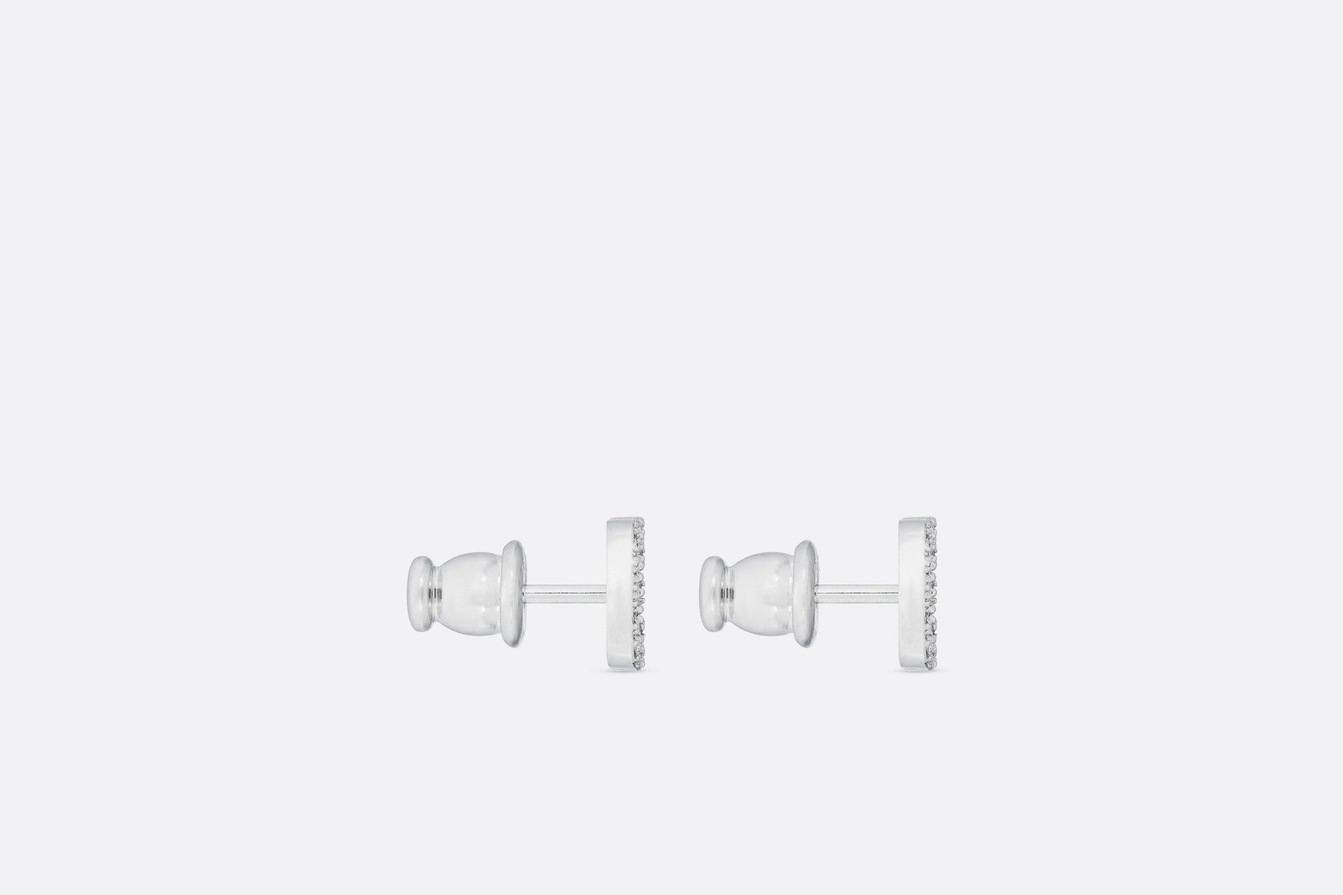 Petit CD Mini Stud Earrings • Silver-Finish Metal with White Crystals