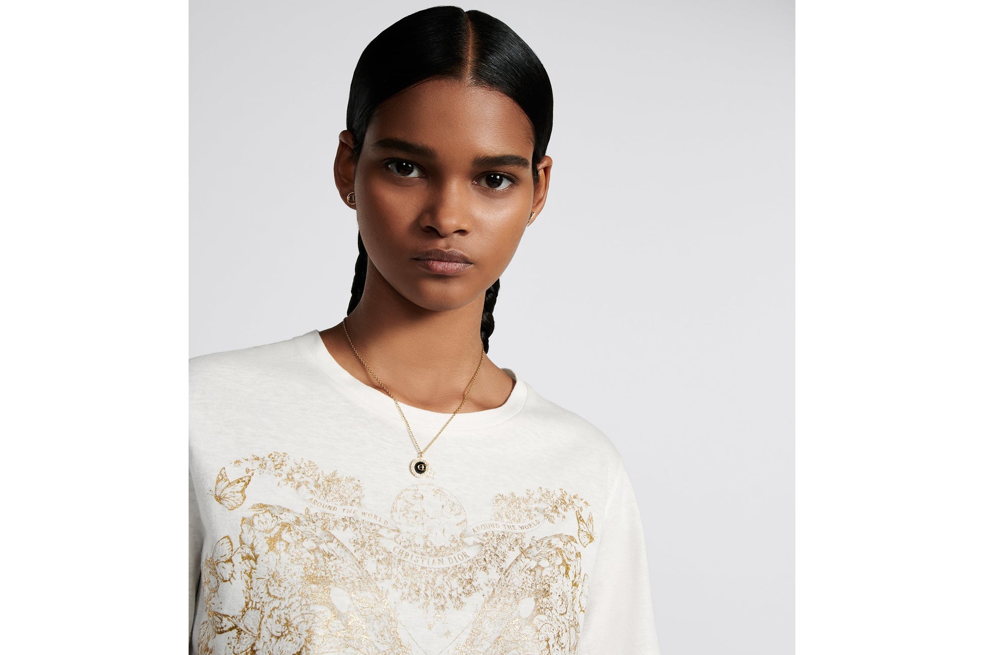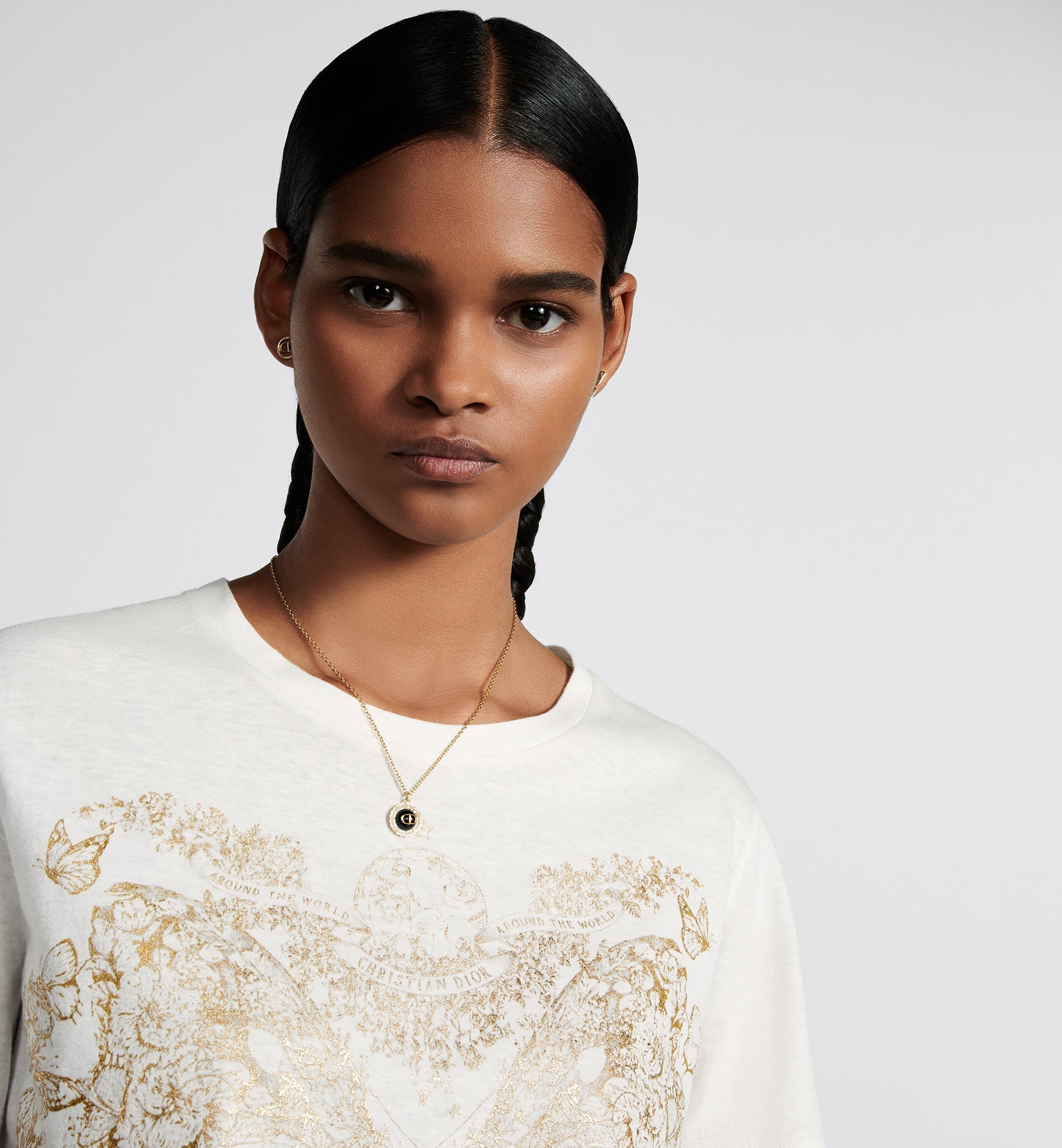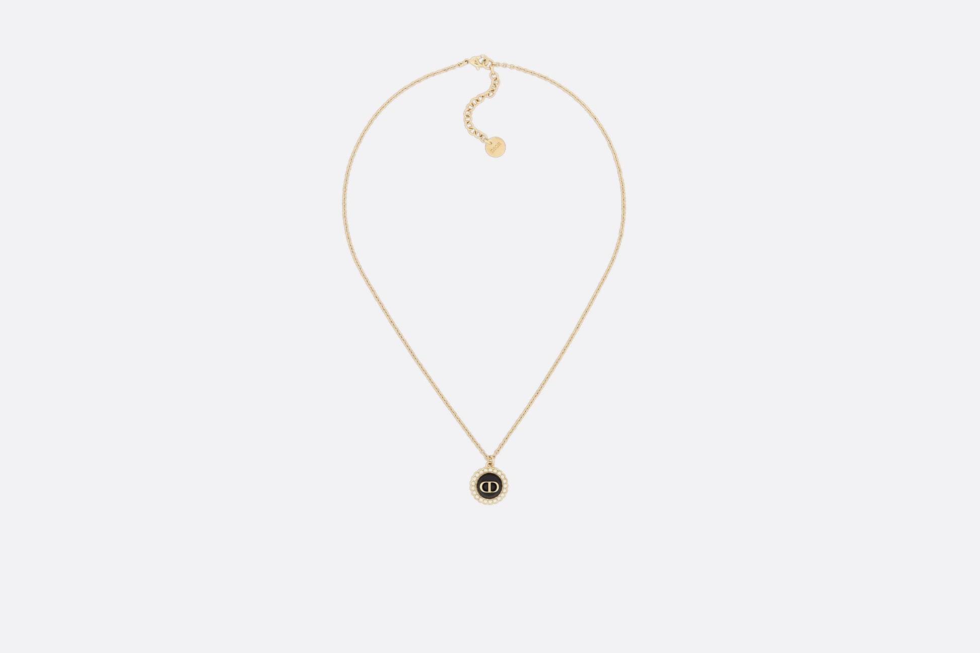 The Petit CD necklace is an elegant and timeless creation. The thin chain crafted in gold-finish metal showcases a black glass cabochon adorned with the CD signature and delicately encircled by white resin pearls. The sophisticated necklace can be worn with other creations from the Petit CD line.