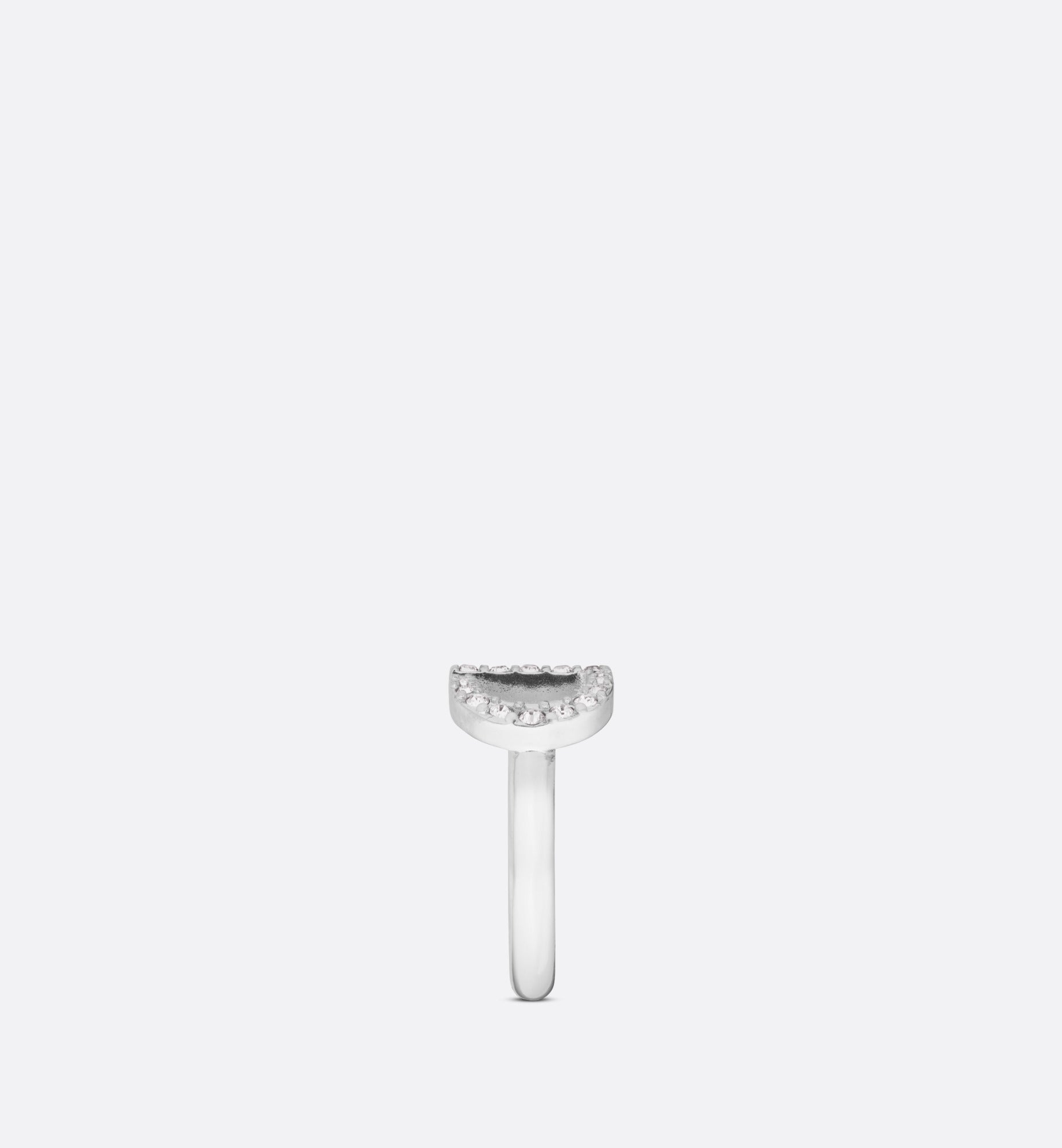 The Petit CD ring offers a modern and refined look. Crafted in silver-finish metal, it features the CD signature embellished with white crystals on the top. Elegant and timeless, the ring can be styled with other creations from the Petit CD line.