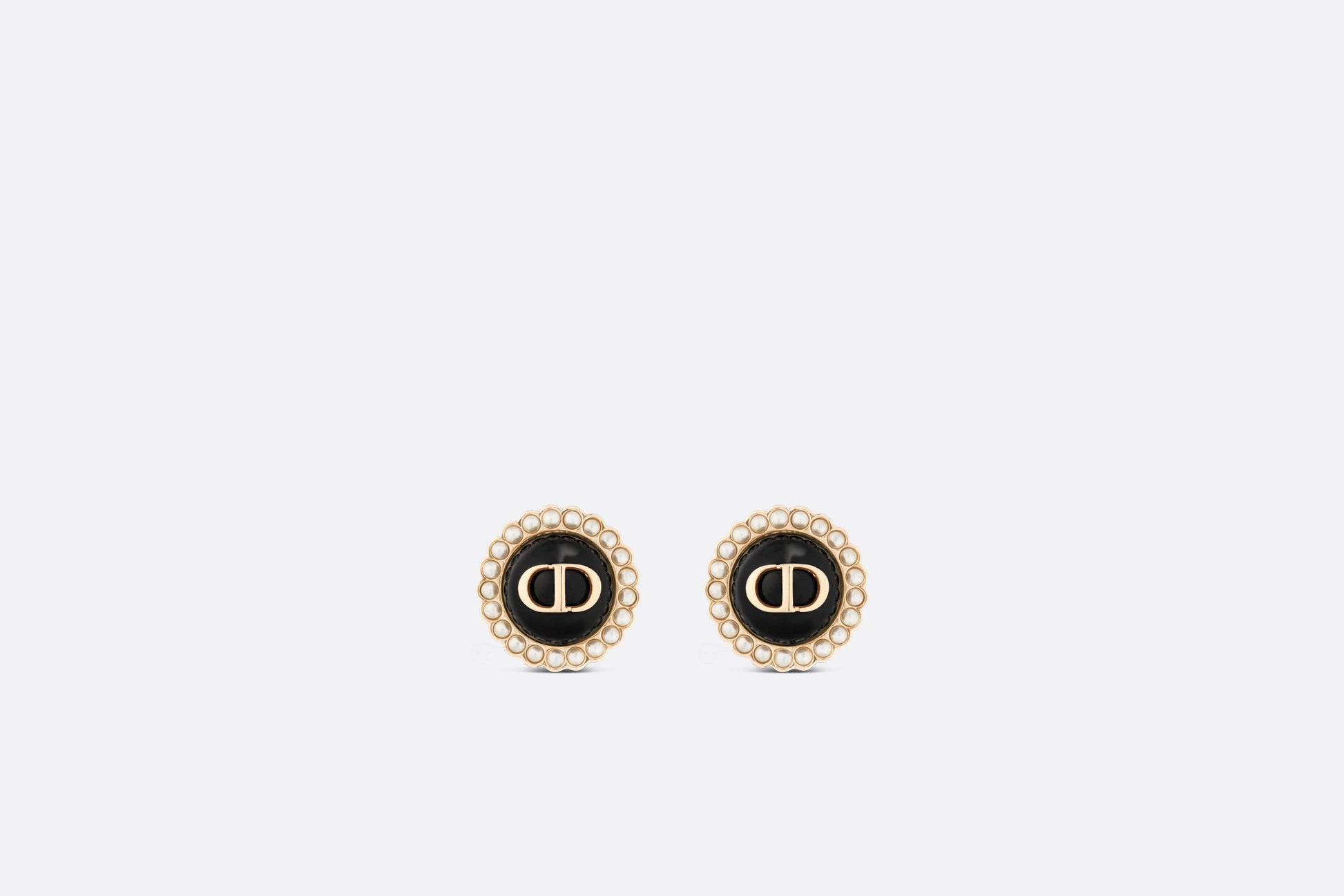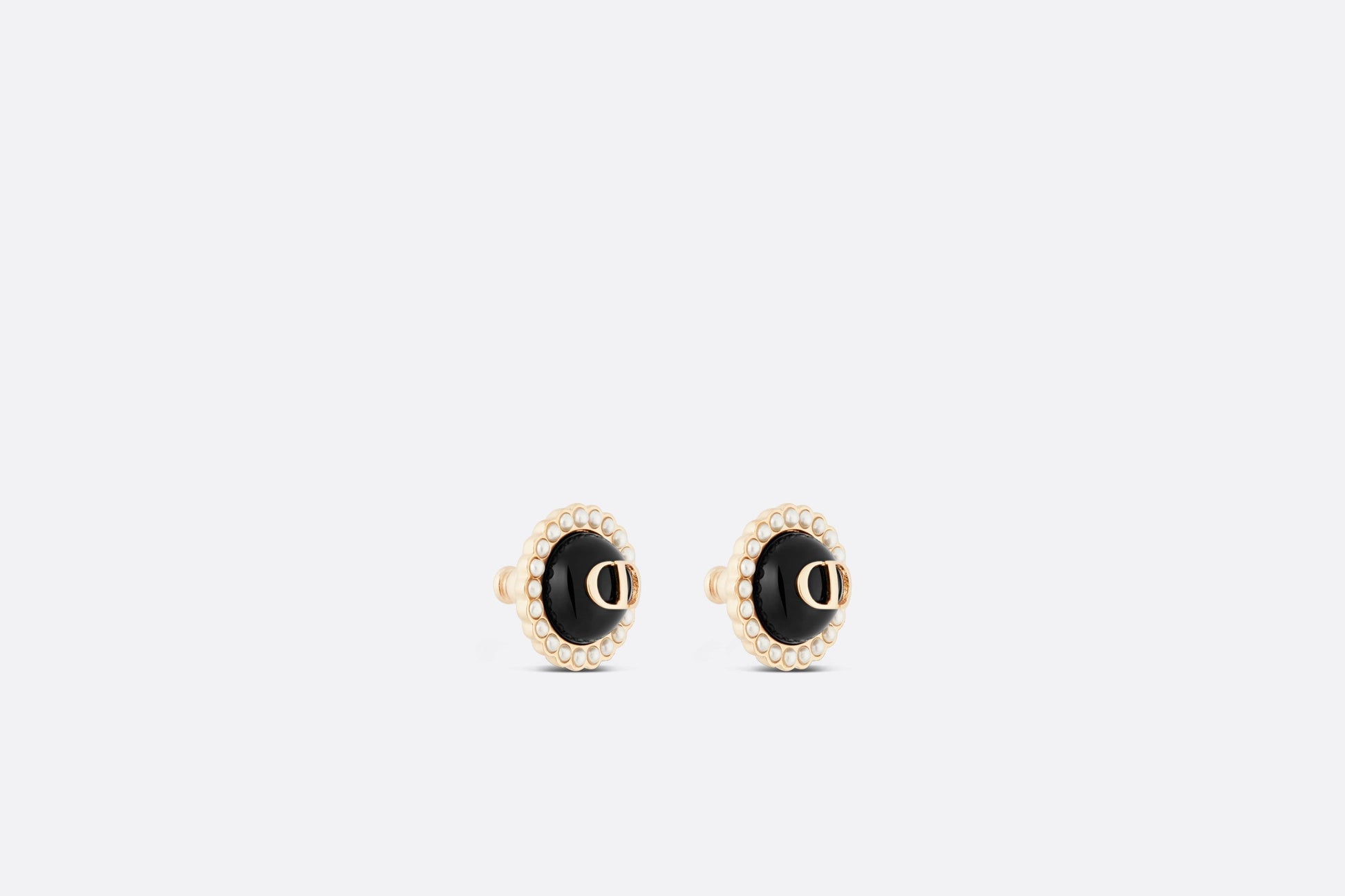 The Petit CD studs boast an elegant and colorful style. Finely crafted in gold-finish metal, they are composed of a black glass cabochon delicately encircled with white resin pearls and enhanced by a 'CD' signature. The earrings can be worn with other creations from the Petit CD line.