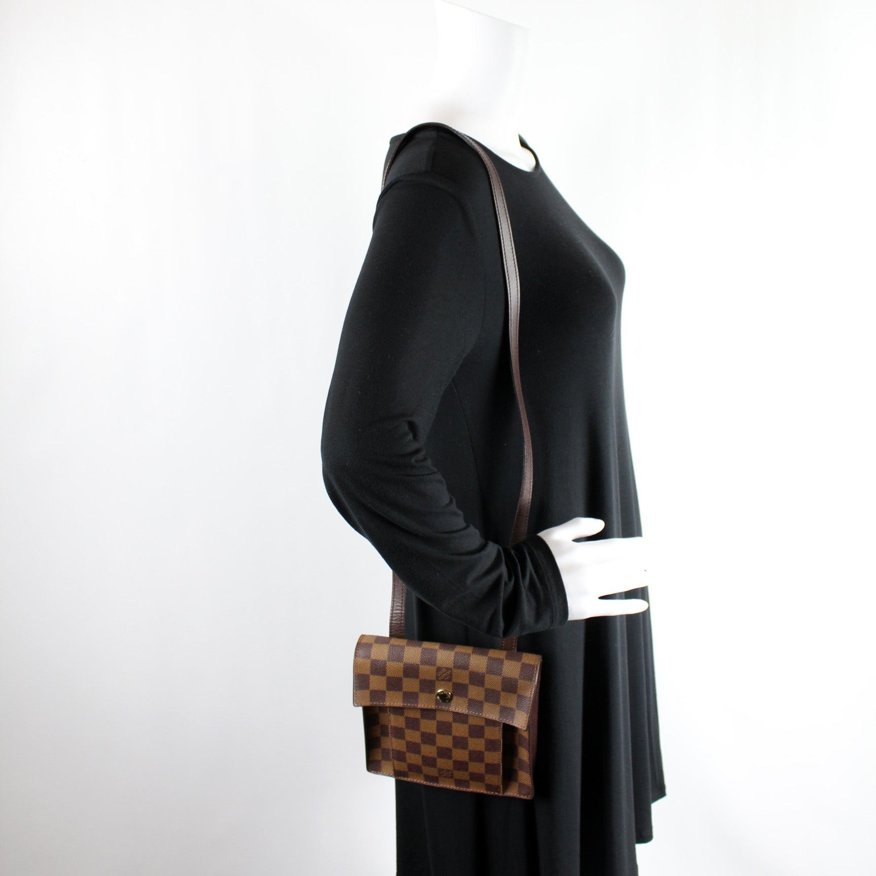 This Louis Vuitton Pimlico Crossbody PM is guaranteed 100% . The exterior is in the classic Louis Vuitton Damier Ebene coated canvas.