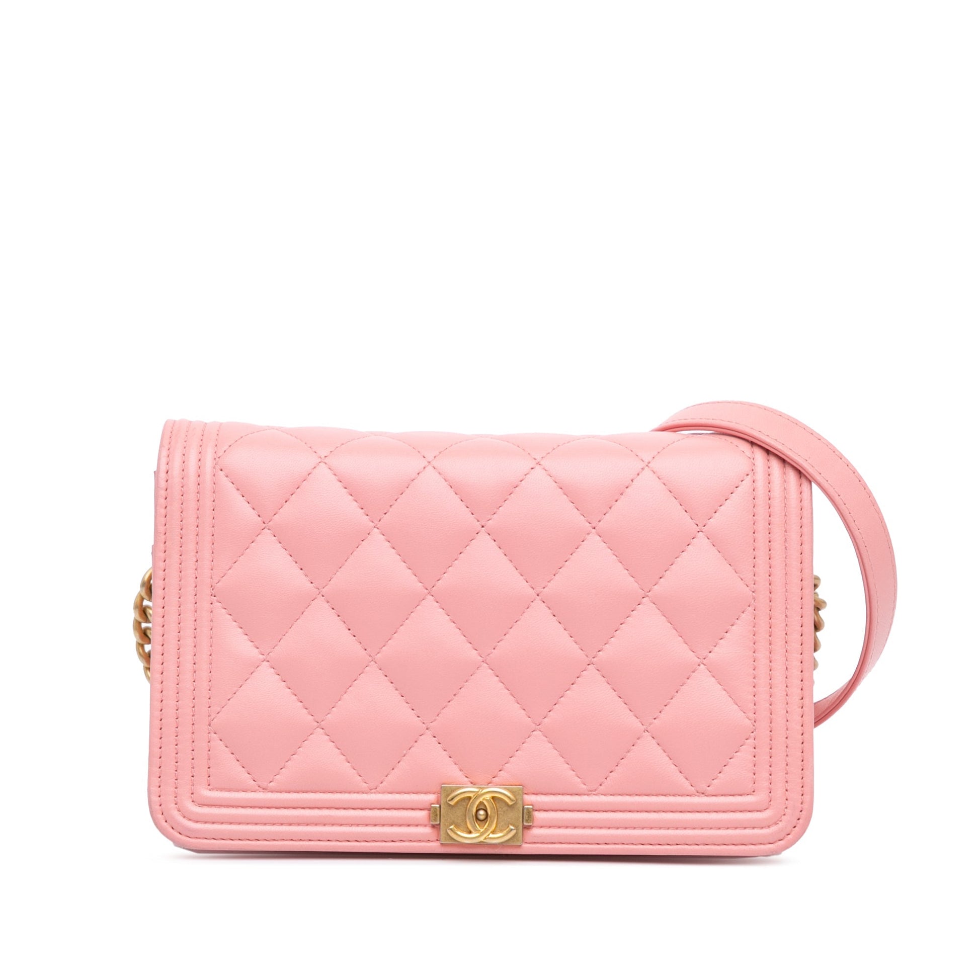 Pink Chanel Lambskin Boy Wallet On Chain Crossbody Bag