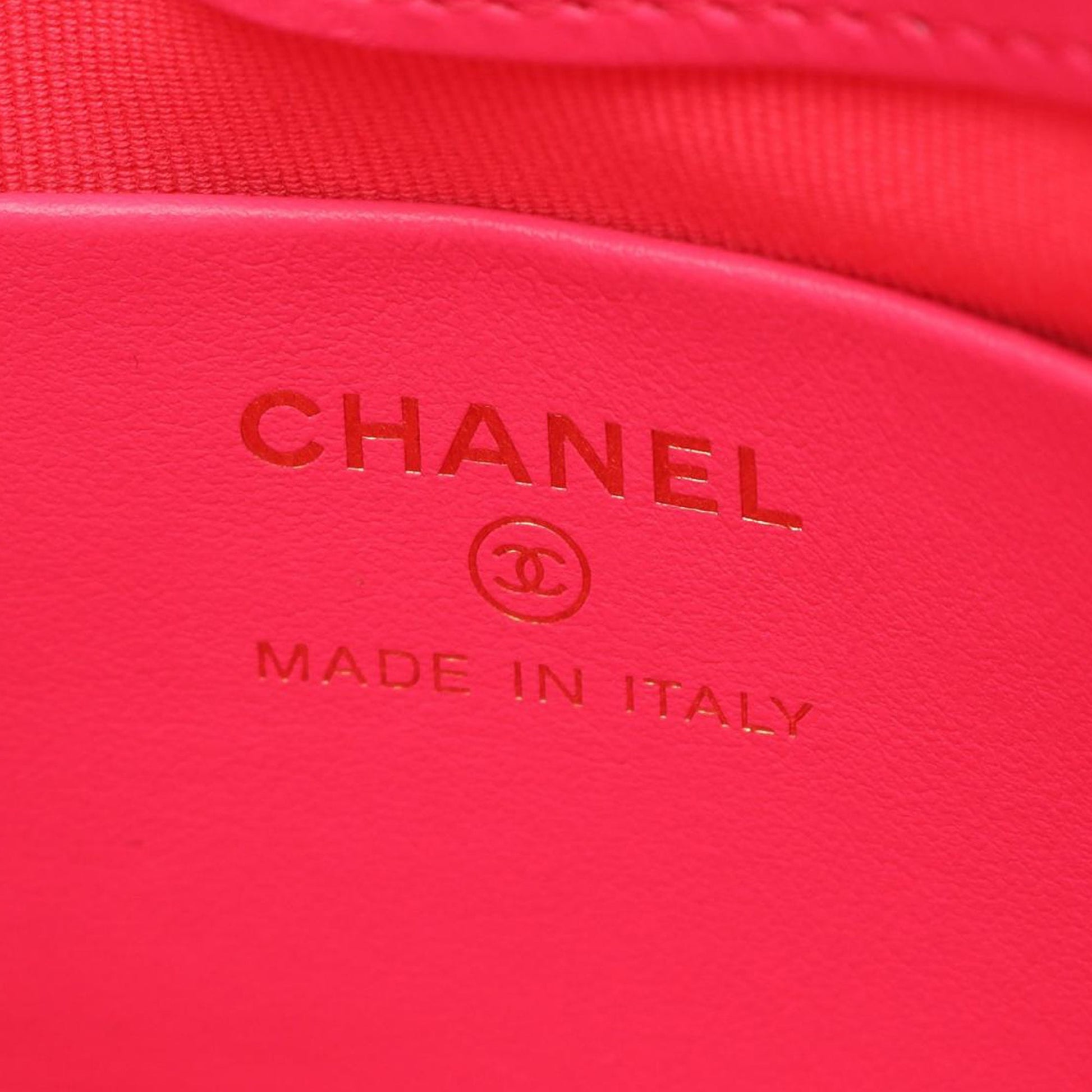 Product Details: Pink Chanel Nano Shiny Aged Calfskin 31 Shopping Bag Satchel. The 31 satchel features a quilted leather body, cut-out handles, a leather woven chain link strap, an open top with magnetic closure, and an interior slip pocket. 5.5" L x 7.9" W x 1.6" D, 4.7" drop. Serial number U8N56G38.