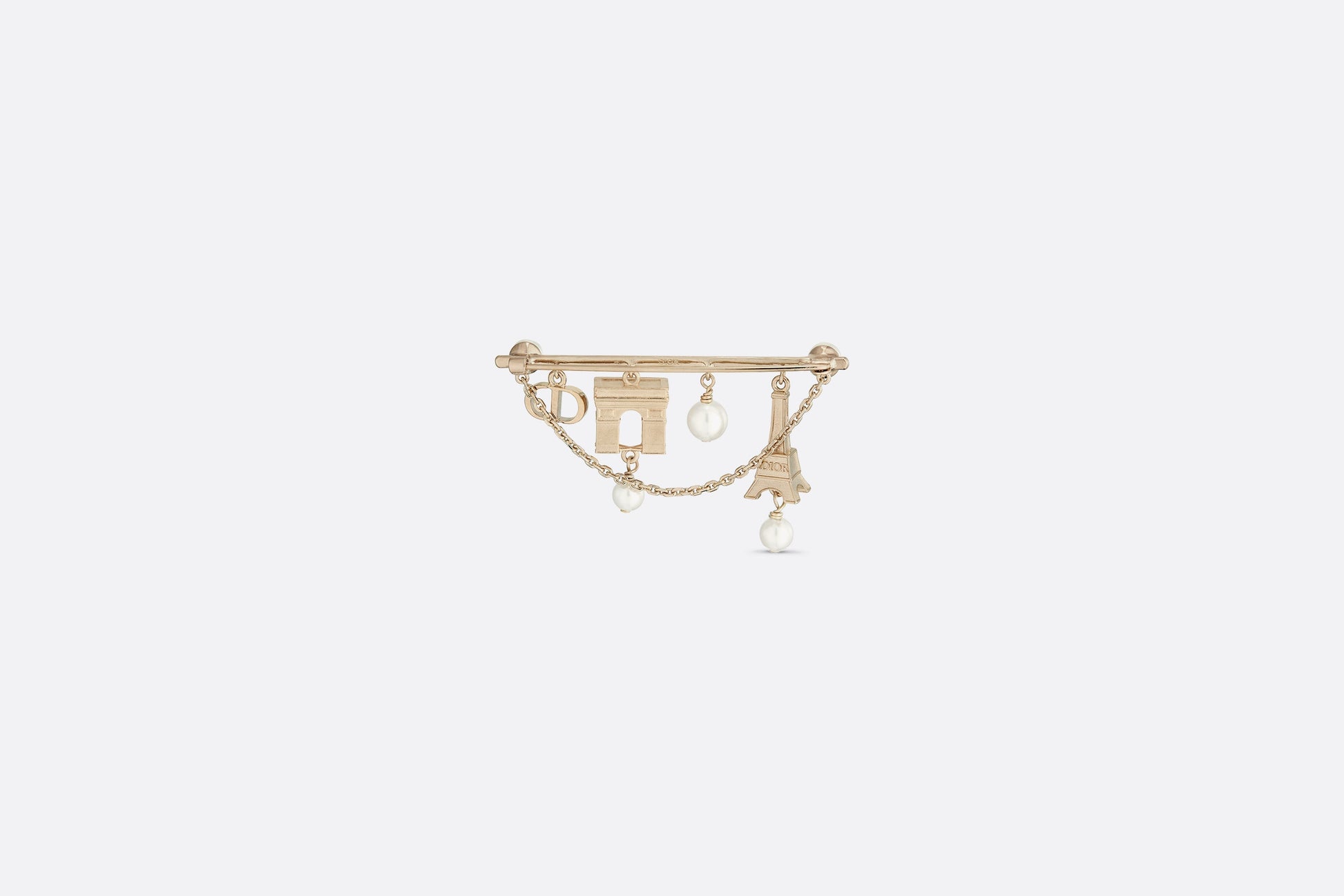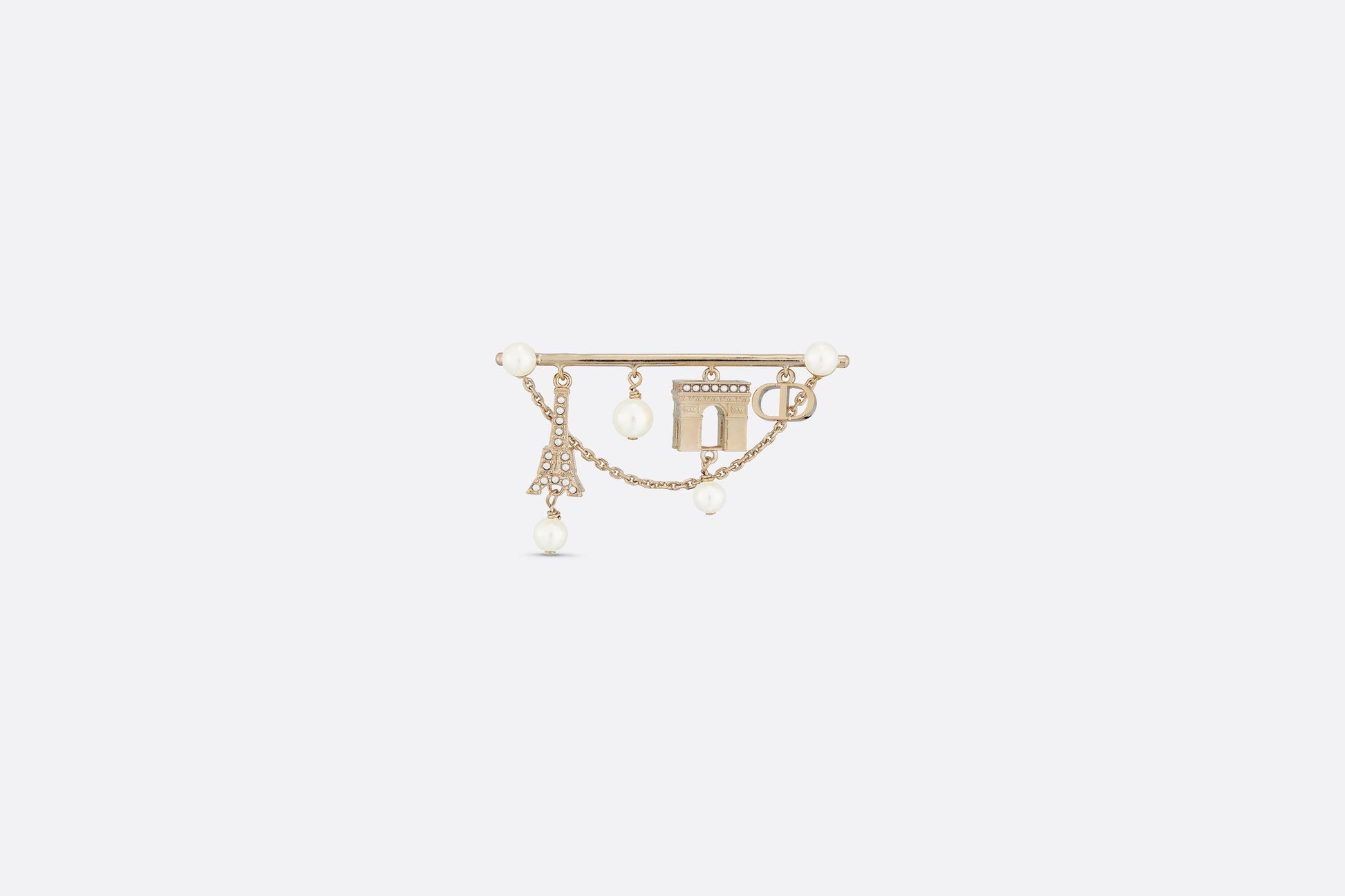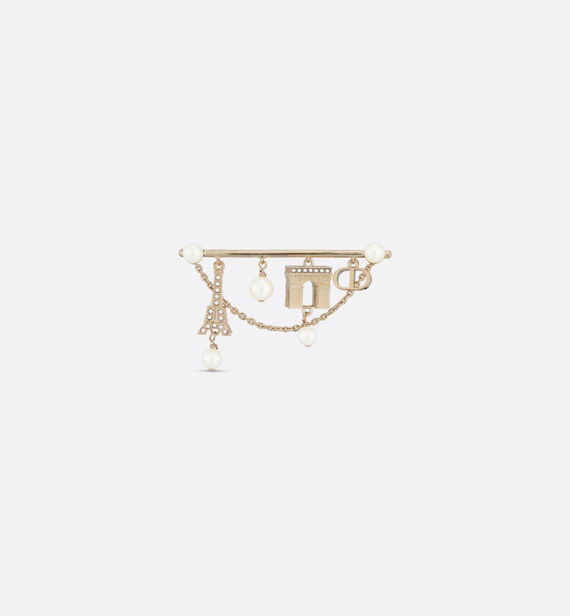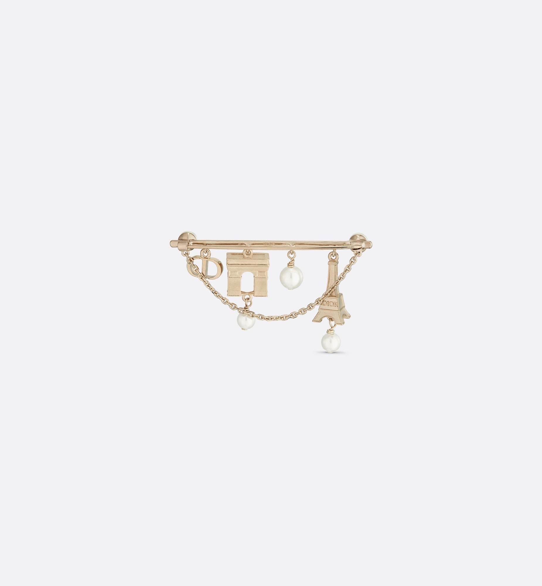 The Plan de Paris brooch pays homage to the City of Lights with a namesake motif. Finely crafted in gold-finish metal accented by white resin pearls, it reveals Eiffel Tower and Arc de Triomphe charms with a delicate pavé of resin pearls. The refined brooch can be styled with other creations from the Plan de Paris line.