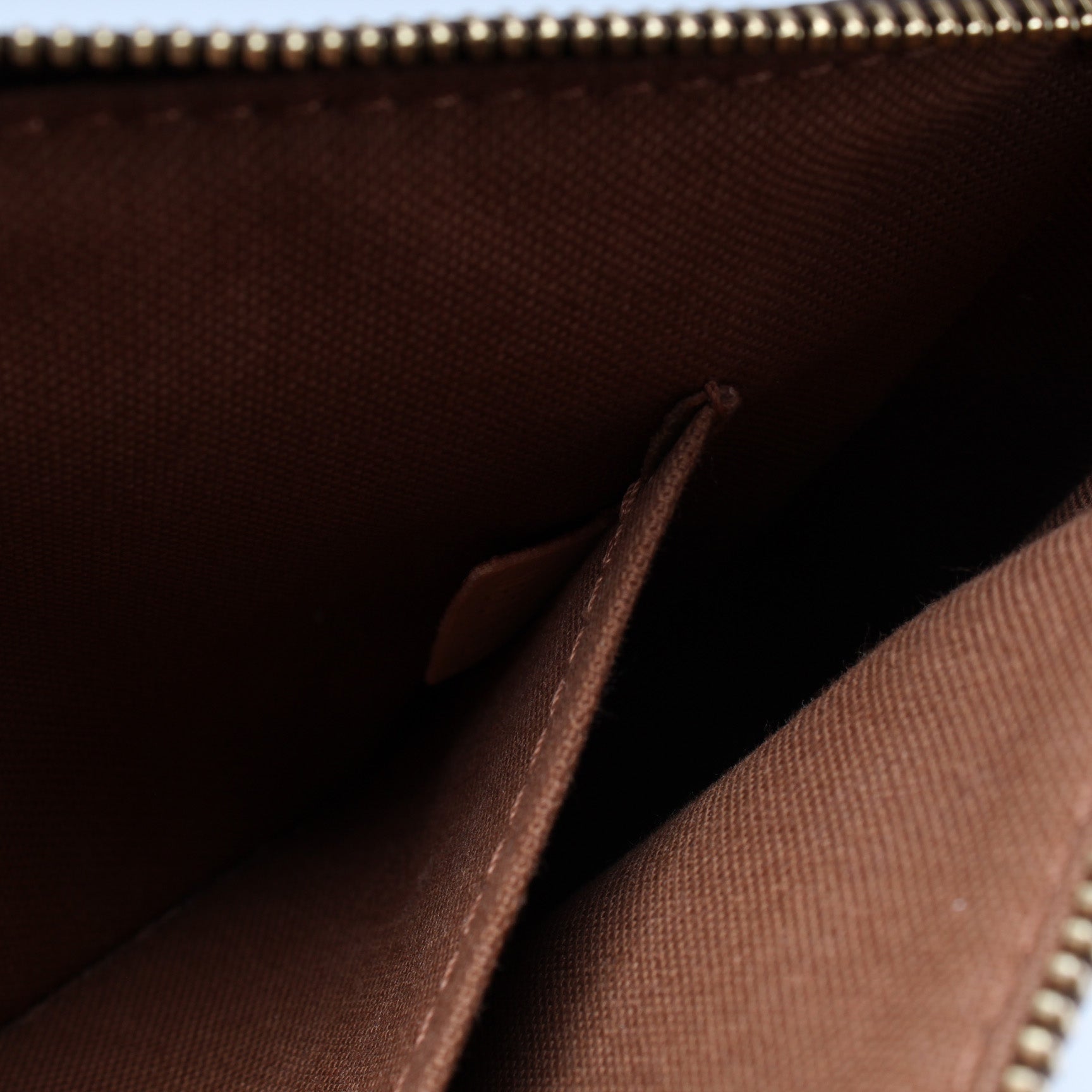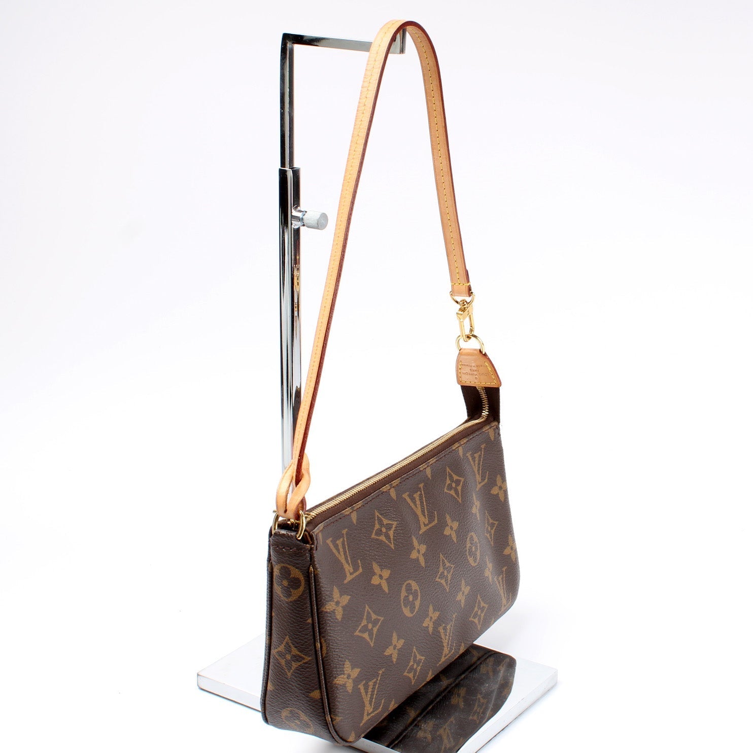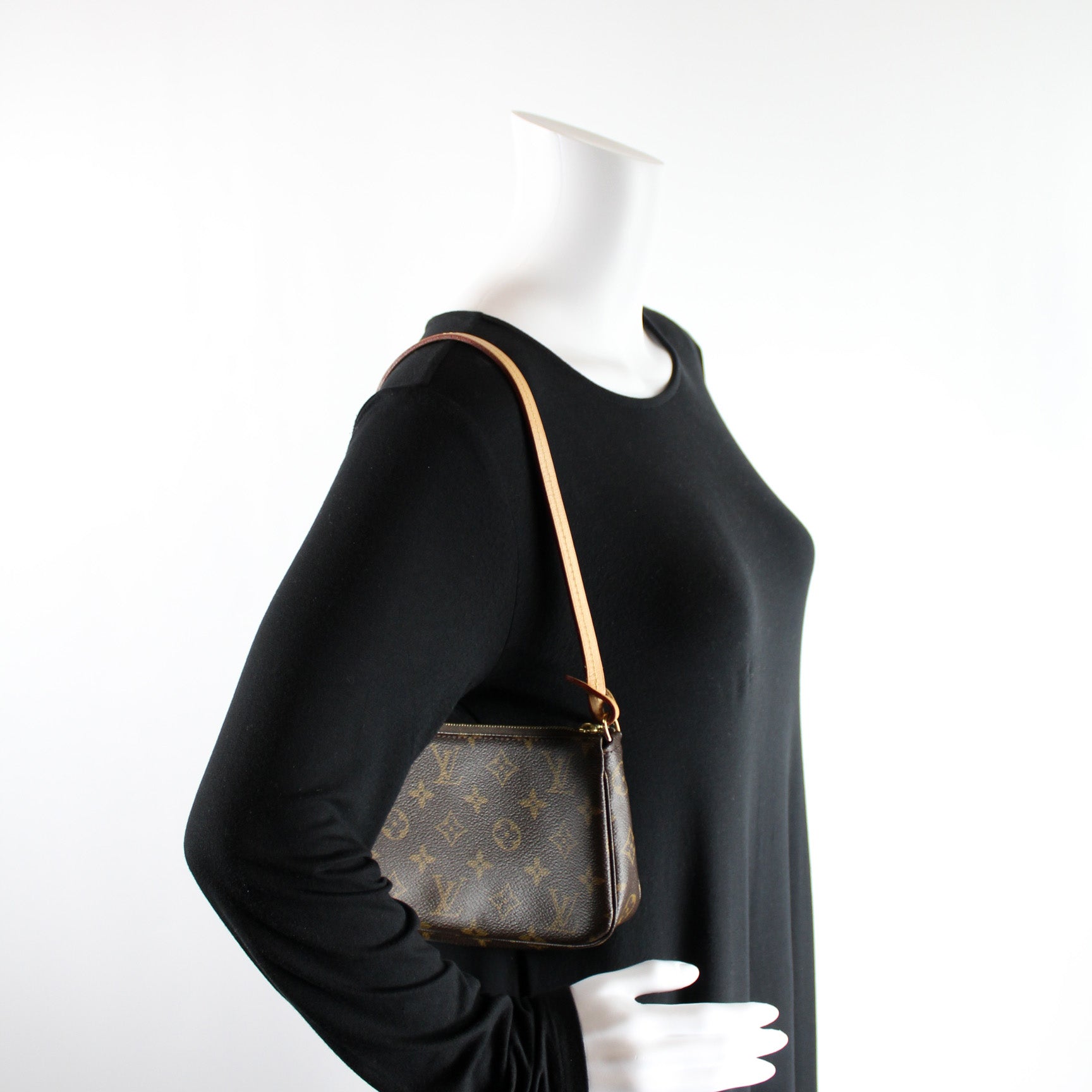 This Louis Vuitton Pochette Accessoires is guaranteed 100% . The exterior is in the classic Monogram coated canvas.