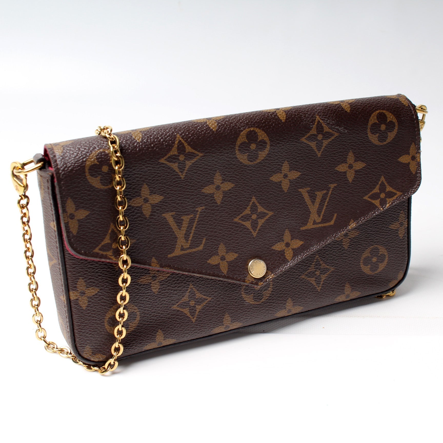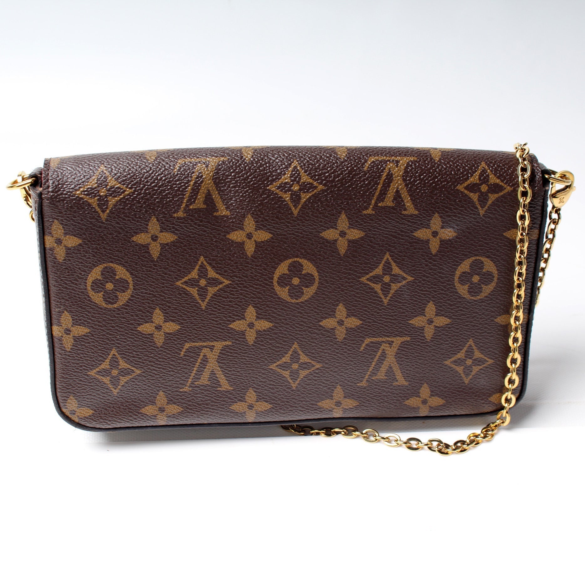 This Louis Vuitton Pochette Felicie is guaranteed 100% . The exterior is in the classic Louis Vuitton Monogram coated canvas.