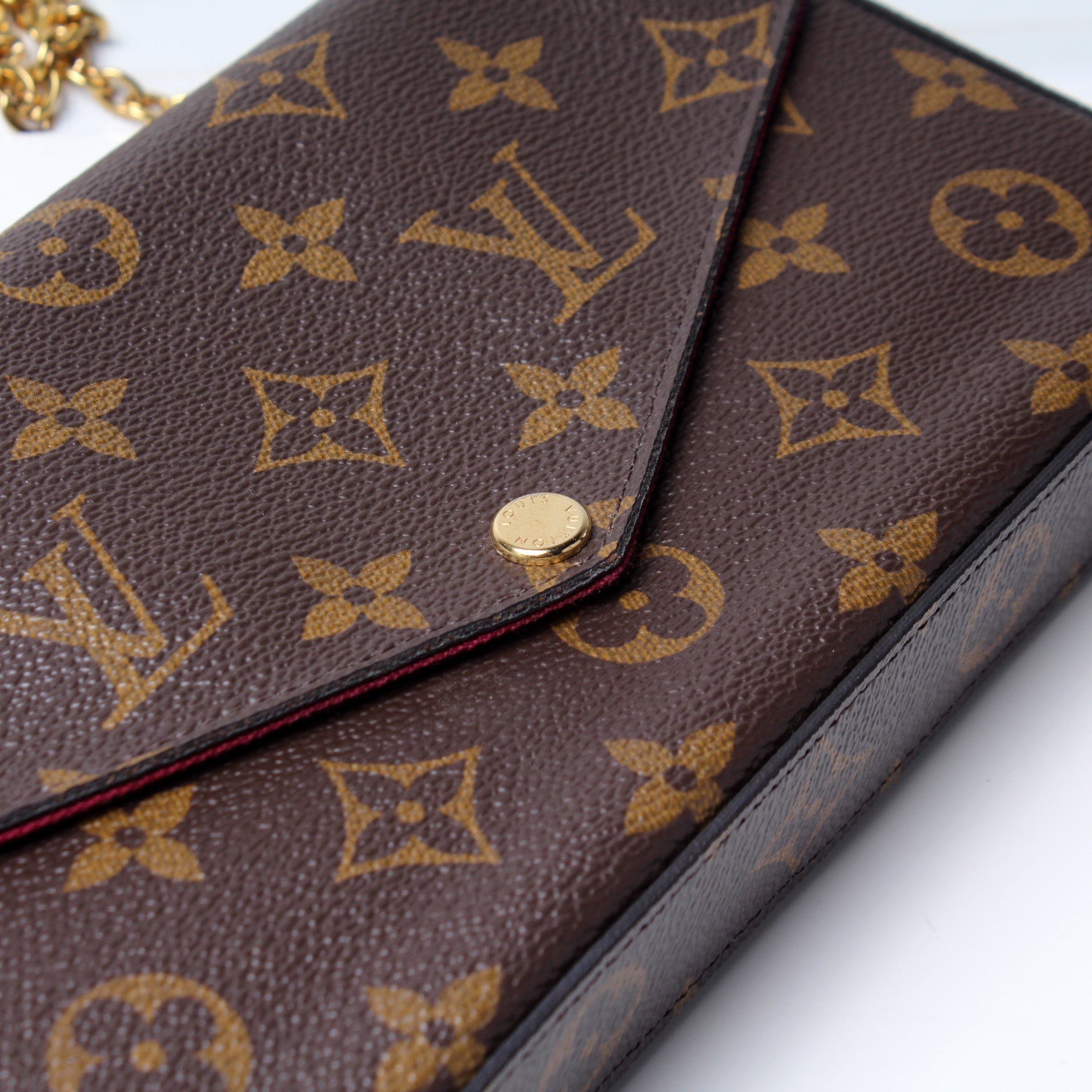 This Louis Vuitton Pochette Felicie is guaranteed 100% . The exterior is in the classic Louis Vuitton Monogram coated canvas.