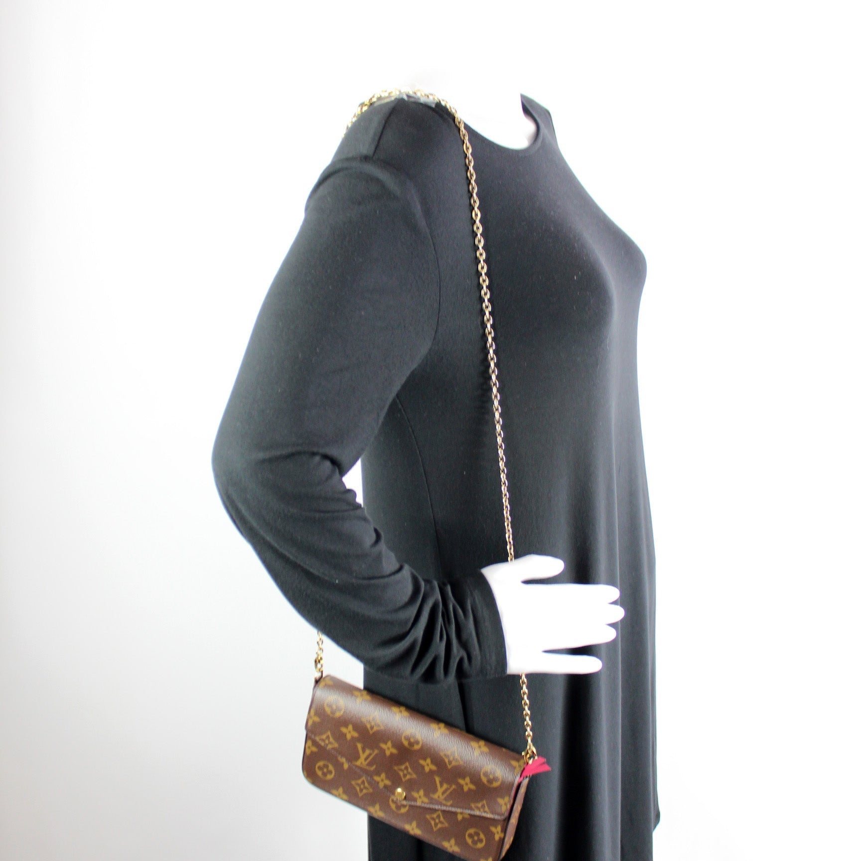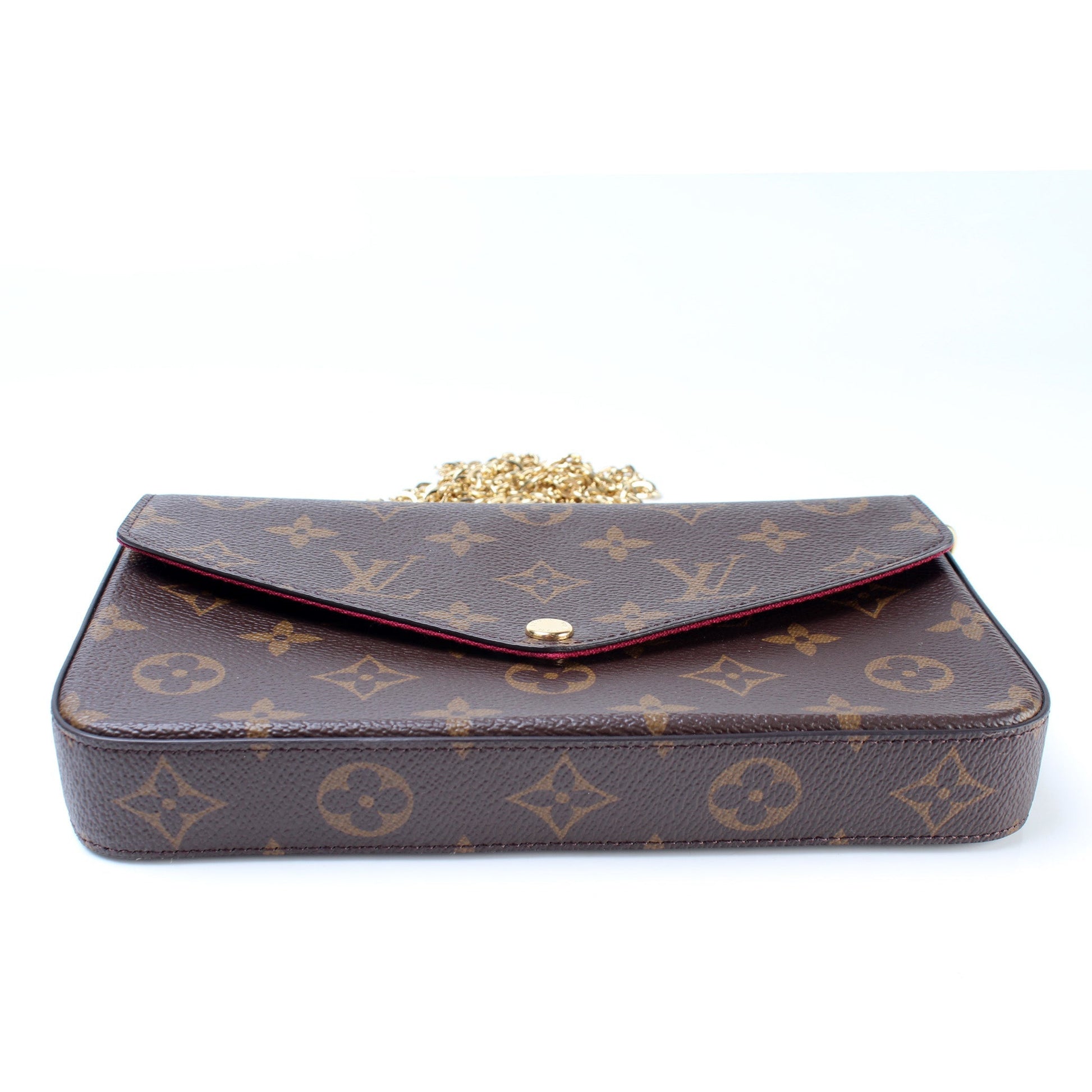 This Louis Vuitton Pochette Felicie is guaranteed 100% . The exterior is in the classic Louis Vuitton Monogram coated canvas.