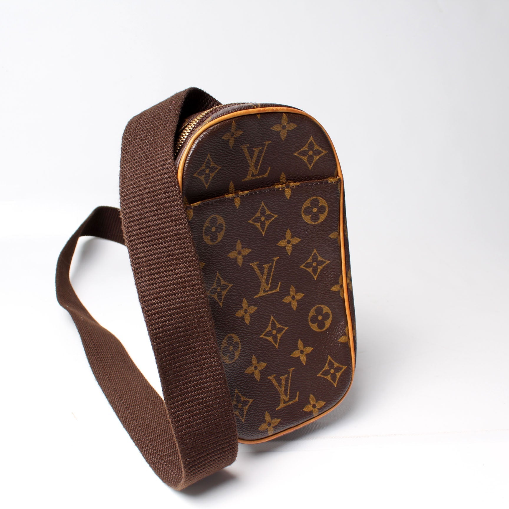 This Louis Vuitton Pochette Gange is guaranteed 100% . The exterior is in the classic Louis Vuitton Monogram coated canvas.