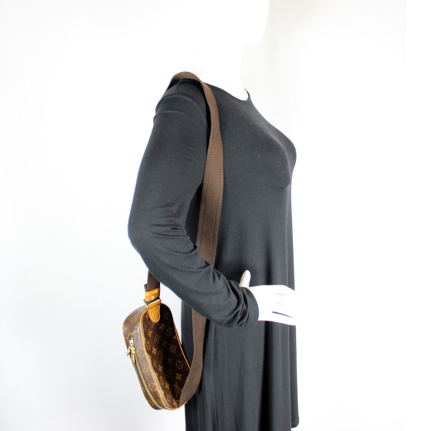 This Louis Vuitton Pochette Gange is guaranteed 100% . The exterior is in the classic Louis Vuitton Monogram coated canvas.