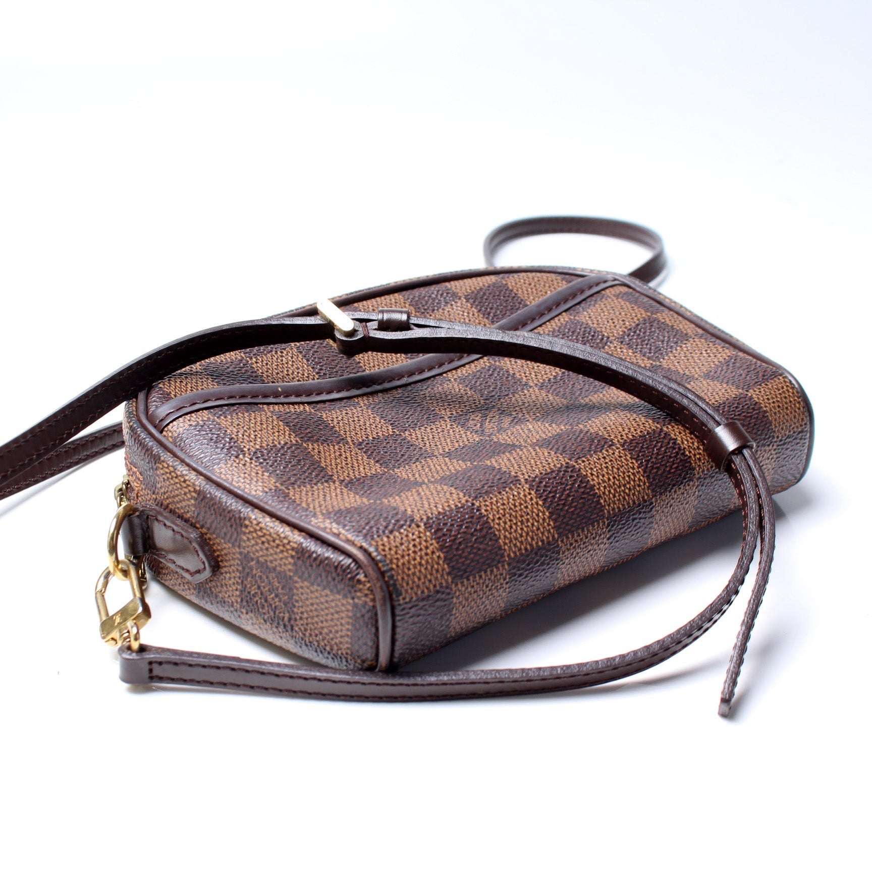 This Louis Vuitton Pochette Ipanema Pouch is guaranteed 100% . The exterior is in the classic Damier Ebene coated canvas.