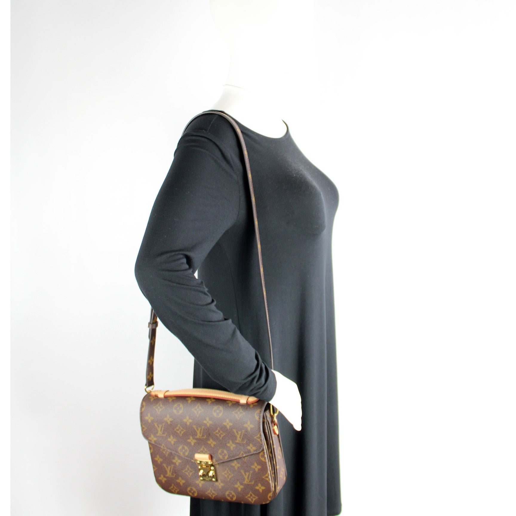 This Louis Vuitton Pochette Metis is guaranteed 100% . The exterior is in the classic Louis Vuitton Monogram coated canvas.