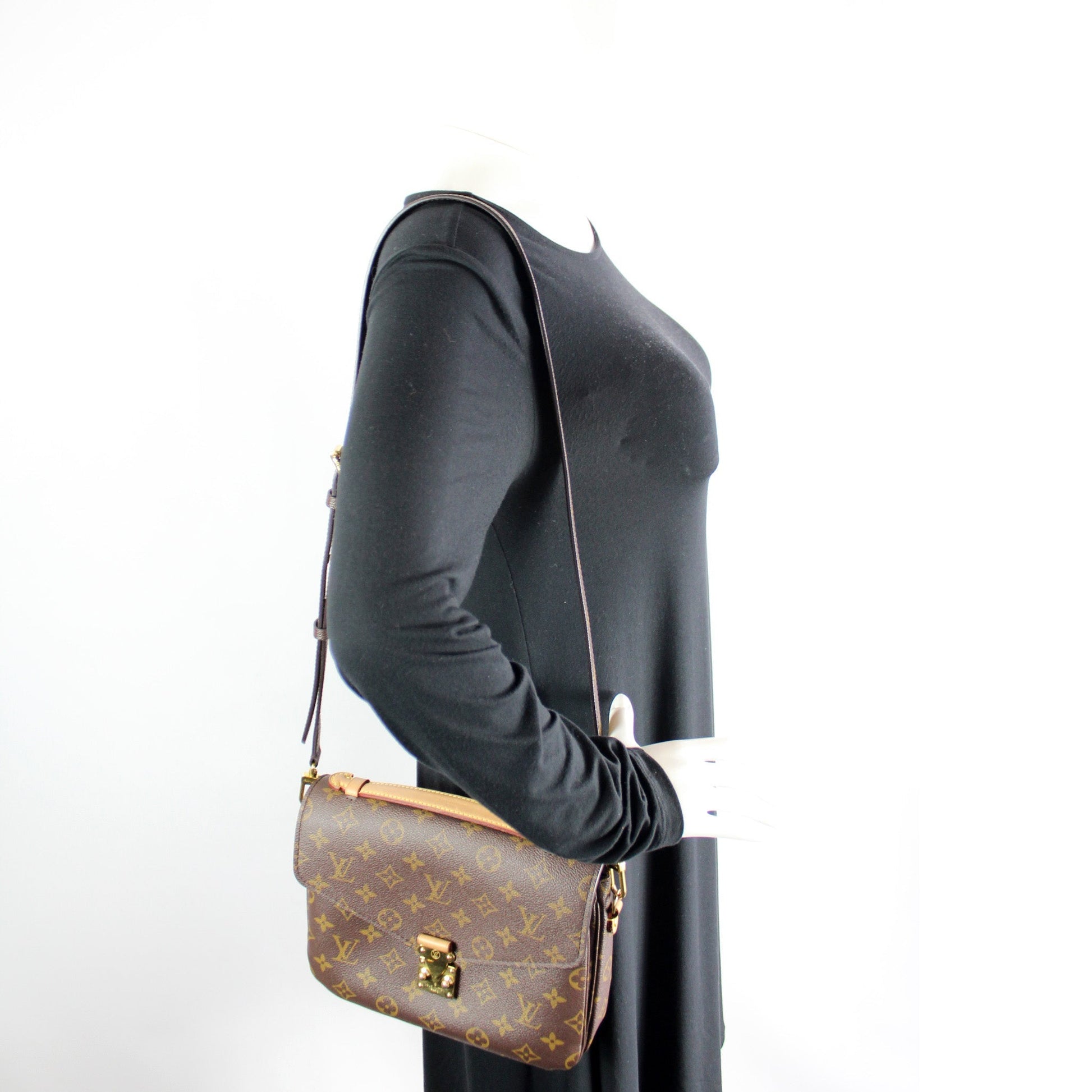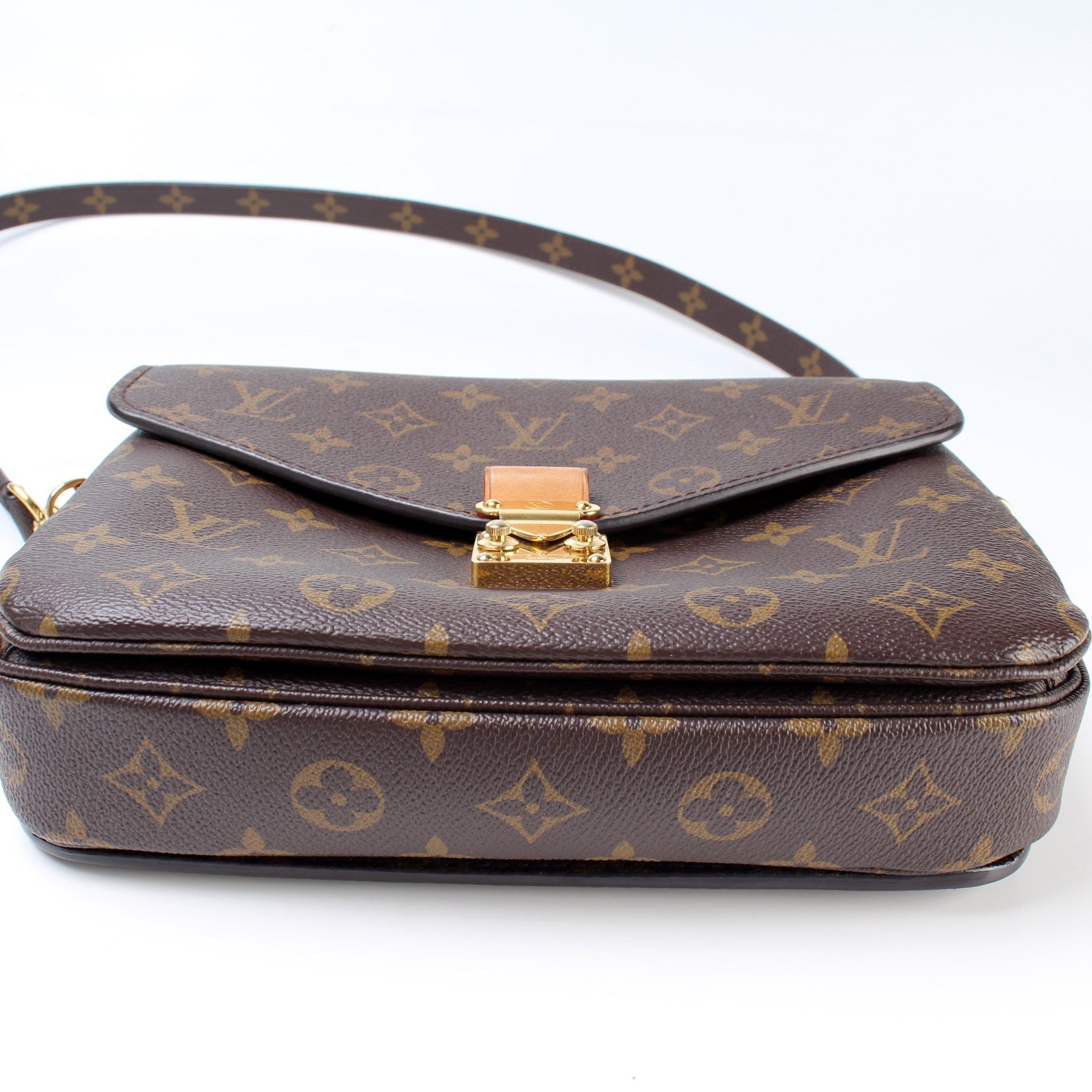 This Louis Vuitton Pochette Metis is guaranteed 100% . The exterior is in the classic Louis Vuitton Monogram coated canvas.