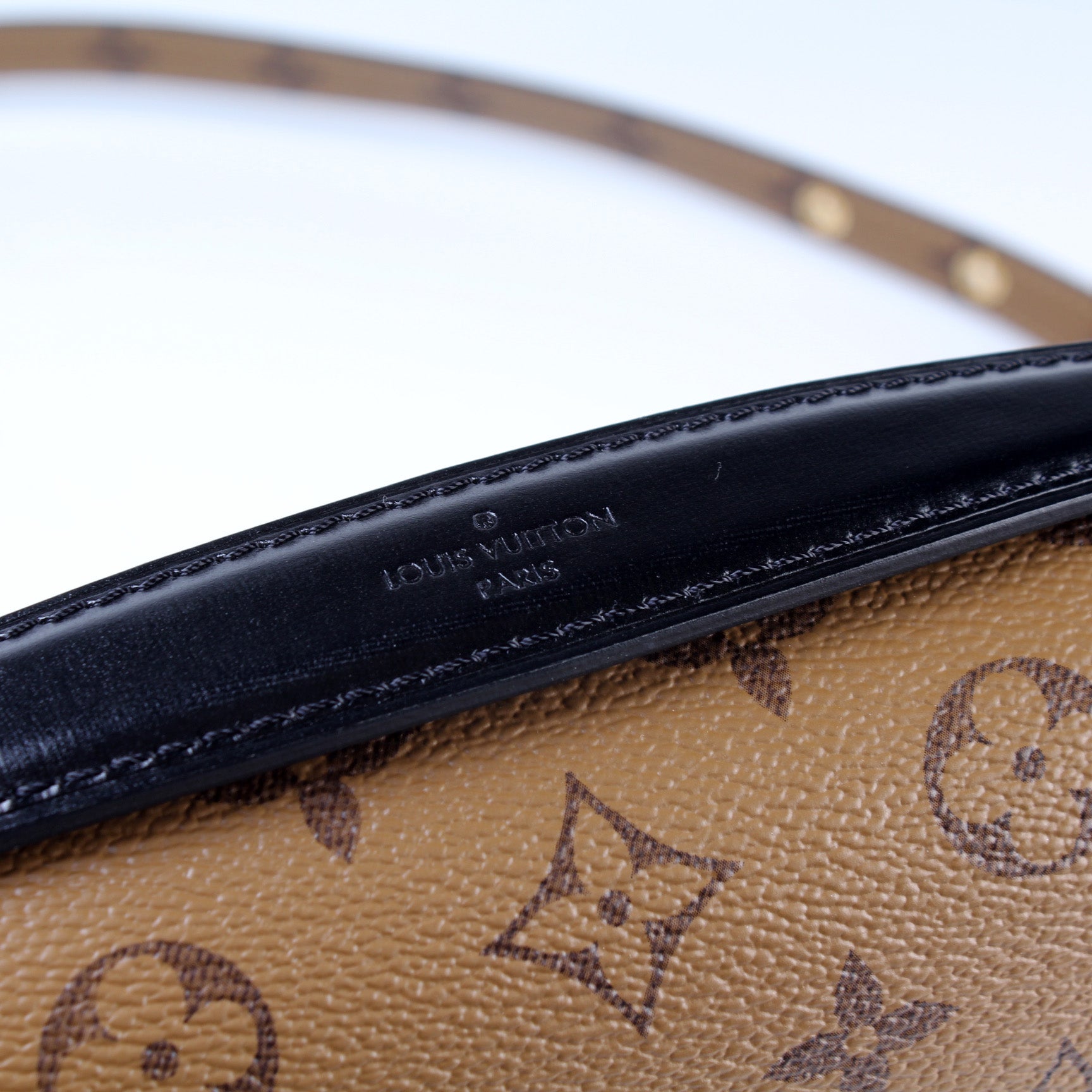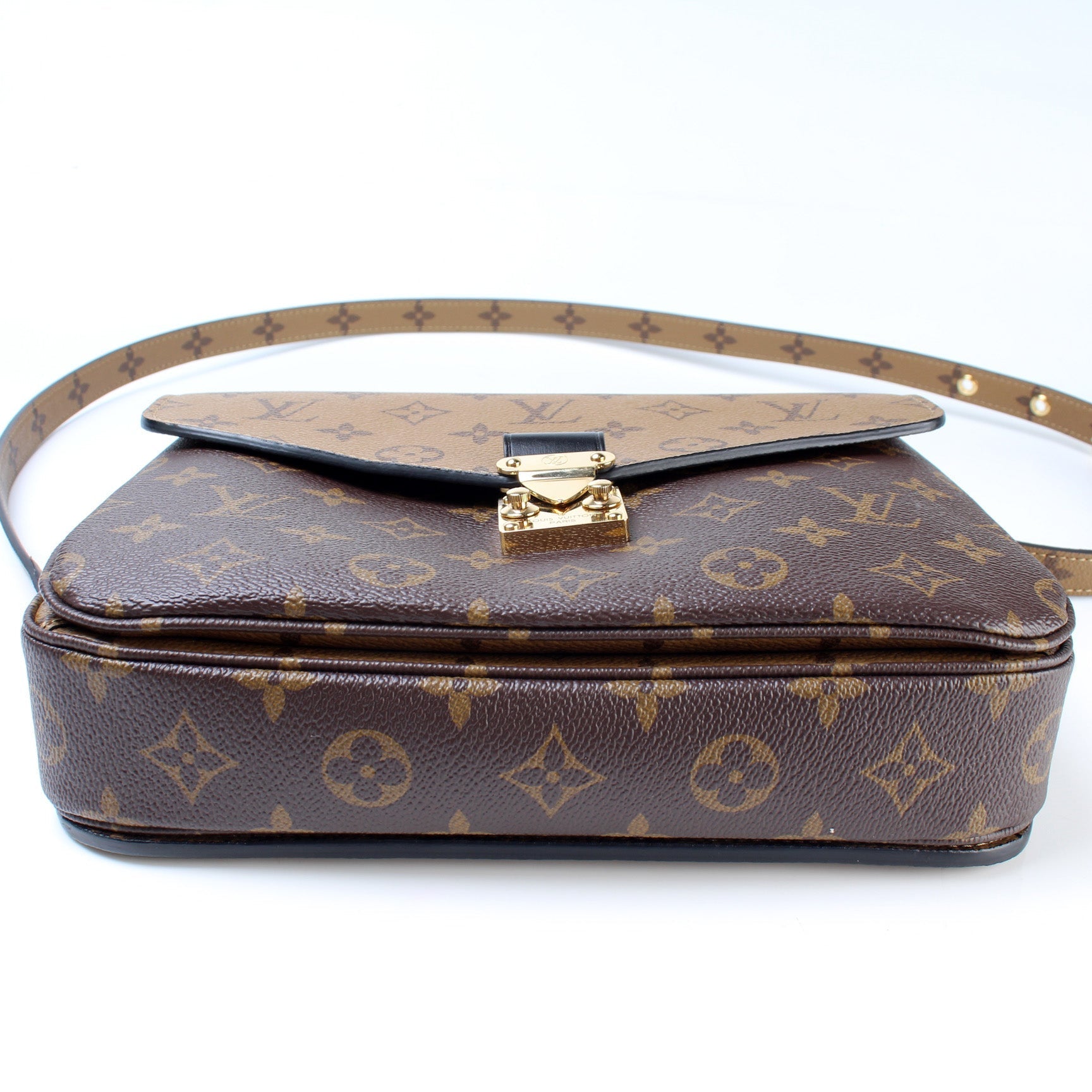 This Louis Vuitton Pochette Metis is guaranteed 100% . The exterior is in the classic Louis Vuitton Monogram Reverse coated canvas.