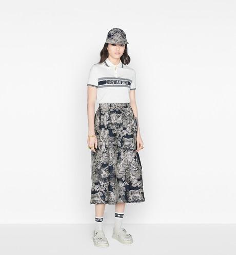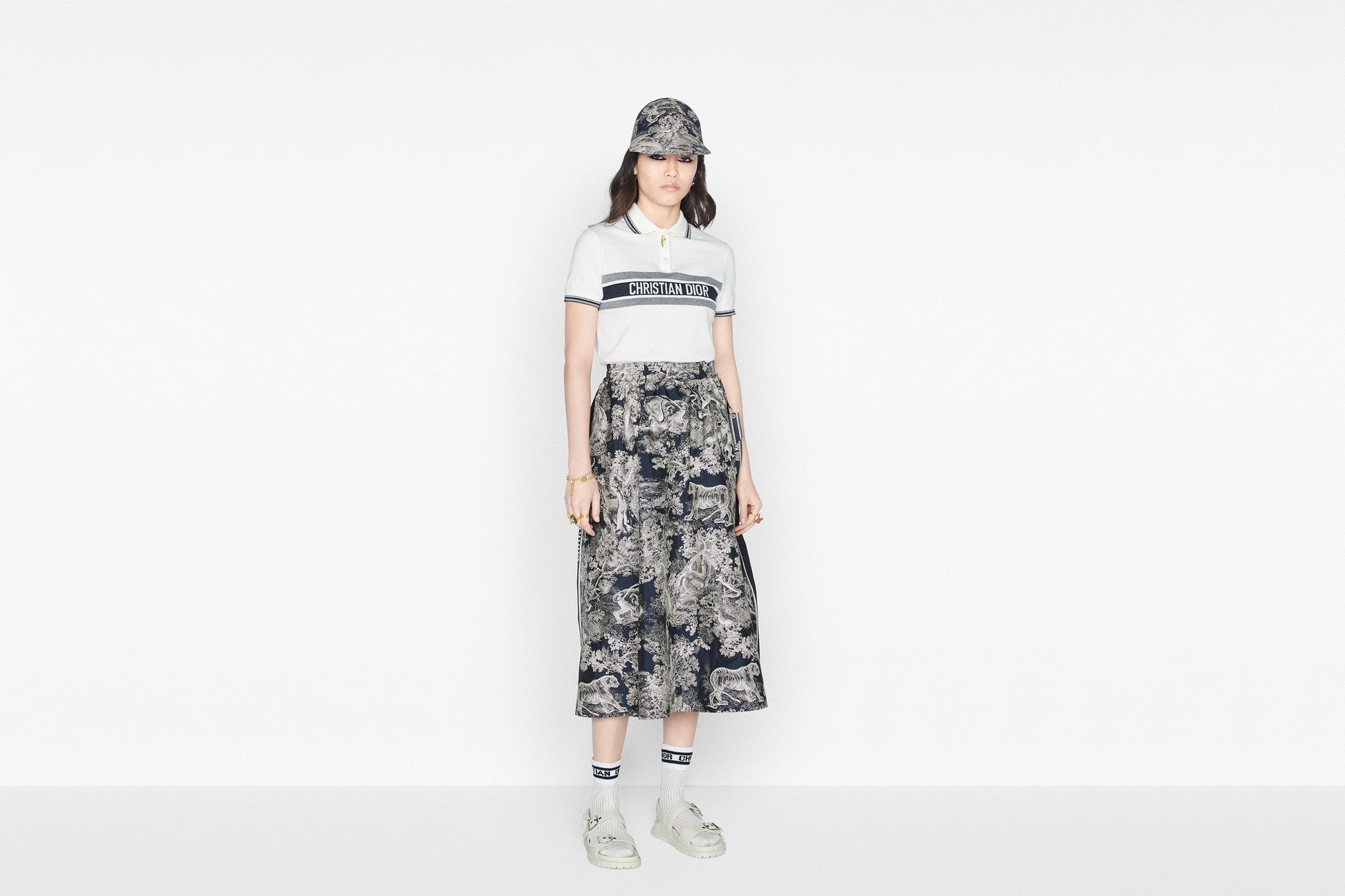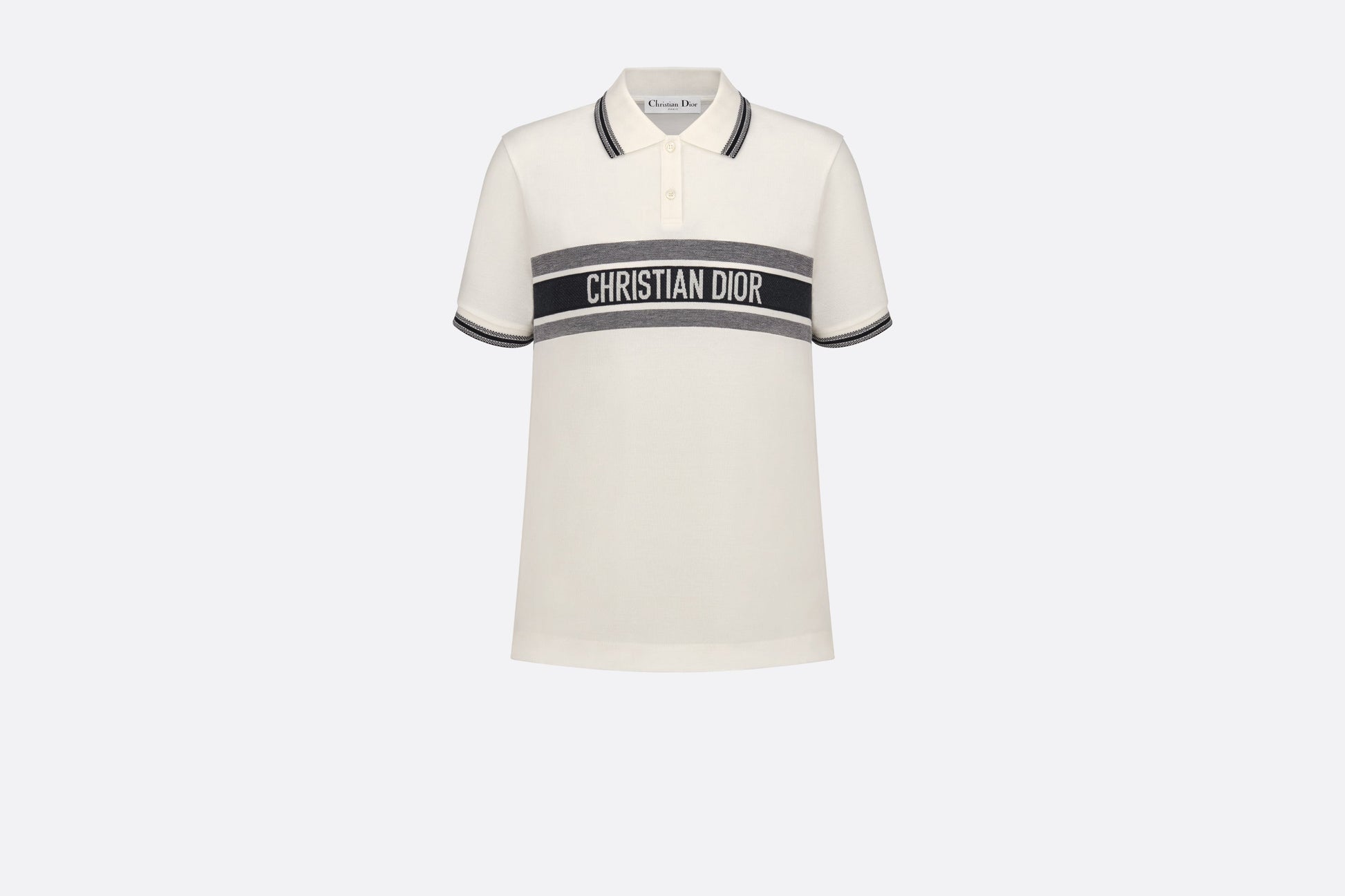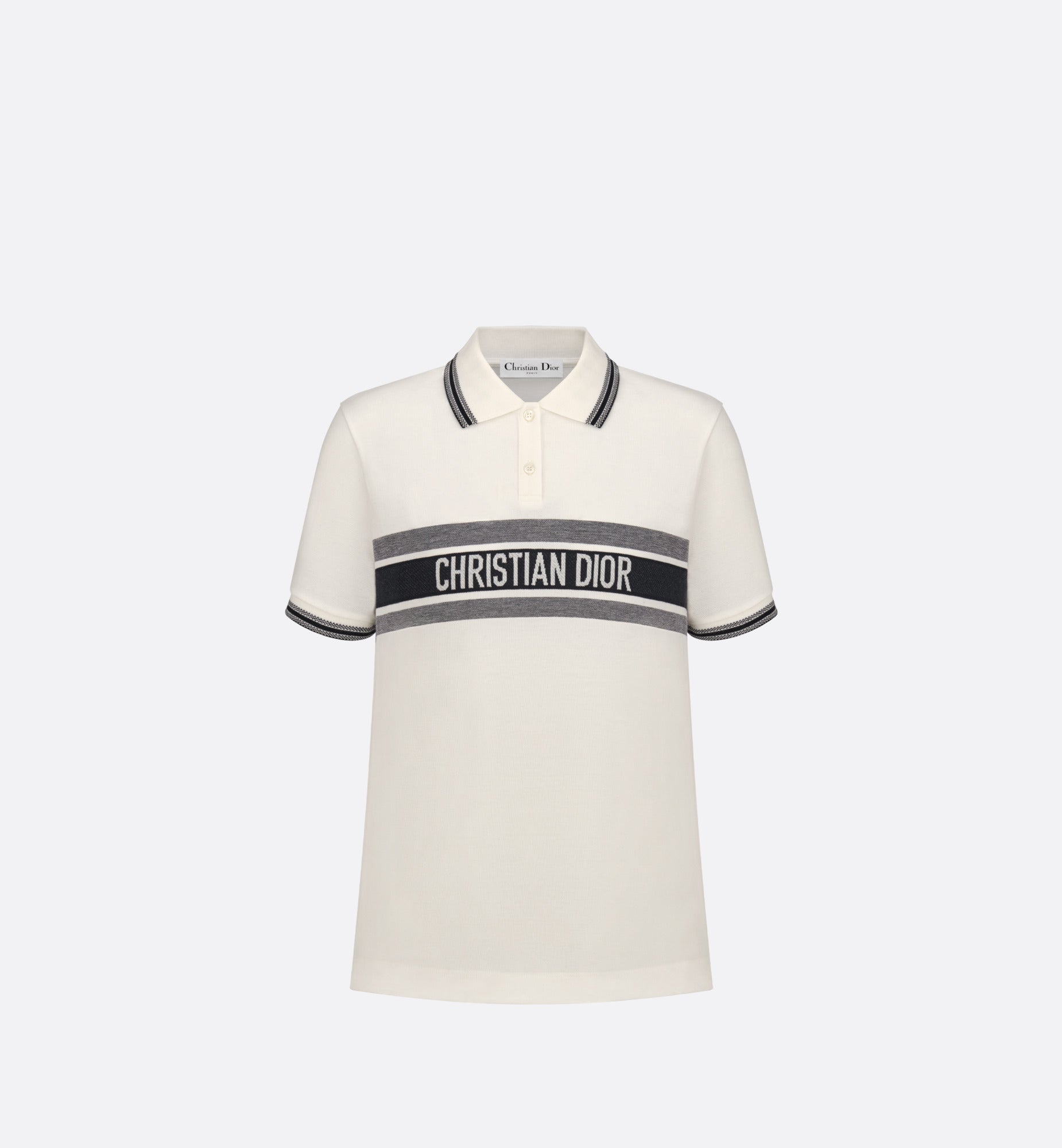 The polo shirt is an elegant creation with sportswear details. Crafted in white cotton jersey, the design is embellished with a navy blue contrasting band with the 'CHRISTIAN DIOR' signature on the front. The style can be paired with other Dioriviera creations.