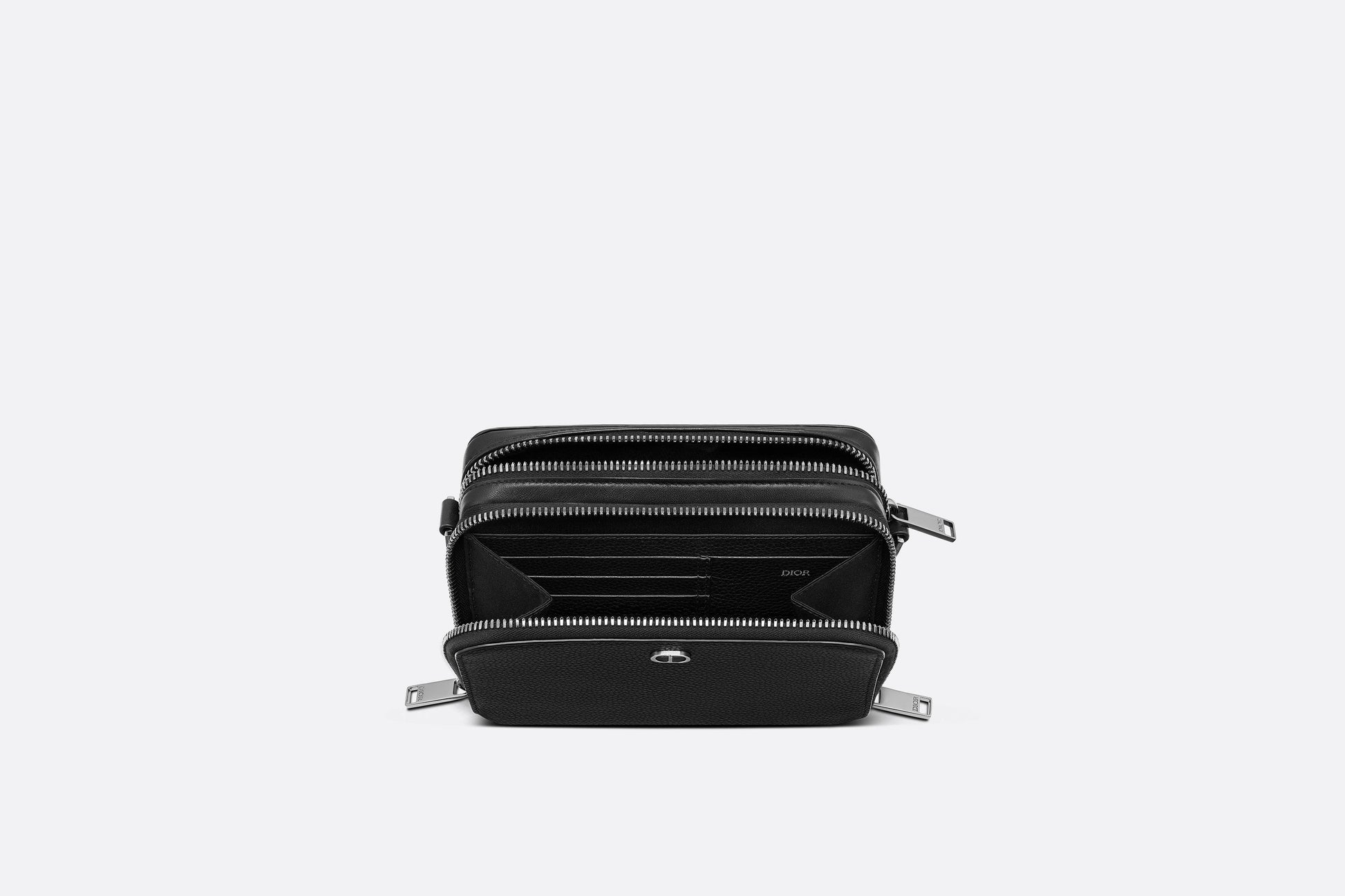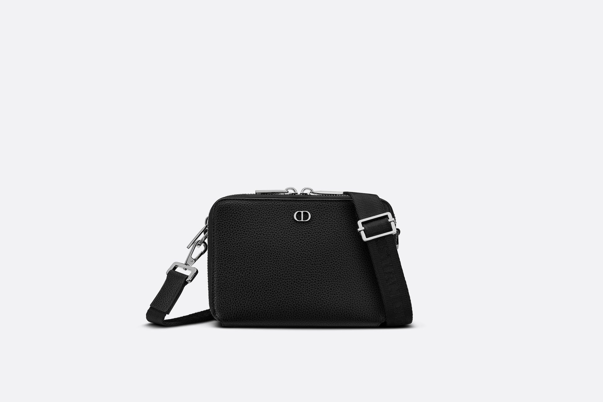 Pouch with Shoulder Strap • Black Grained Calfskin with 'CD Icon' Signature