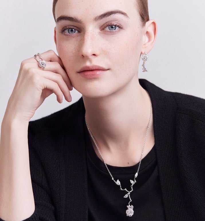Rose Dior Bagatelle showcases the rose for a very elegant and timeless aesthetic. The collection name comes from the Bagatelle rose garden in Paris, where thousands of rose bushes bloom. The design is transposed by Victoire de Castellane into sparkling creations adorned with diamonds. The incredibly precious styles reveal fine jewelry technical expertise and Dior savoir-faire par excellence.