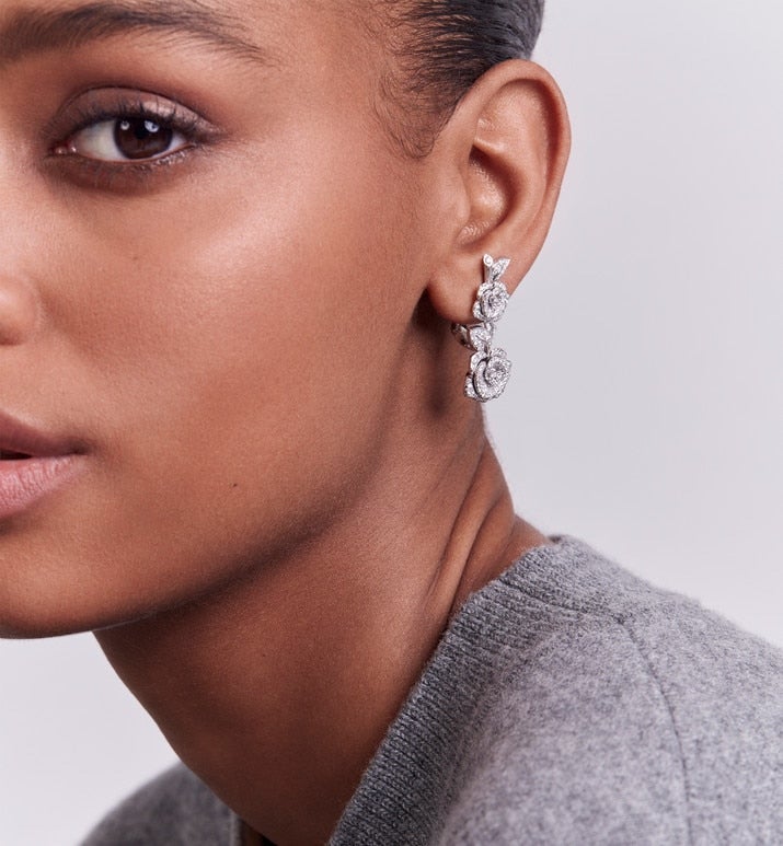 Rose Dior Bagatelle showcases the rose for a very elegant and timeless aesthetic. The collection name comes from the Bagatelle rose garden in Paris, where thousands of rose bushes bloom. The design is transposed by Victoire de Castellane into sparkling creations adorned with diamonds. The incredibly precious styles reveal fine jewelry technical expertise and Dior savoir-faire par excellence.