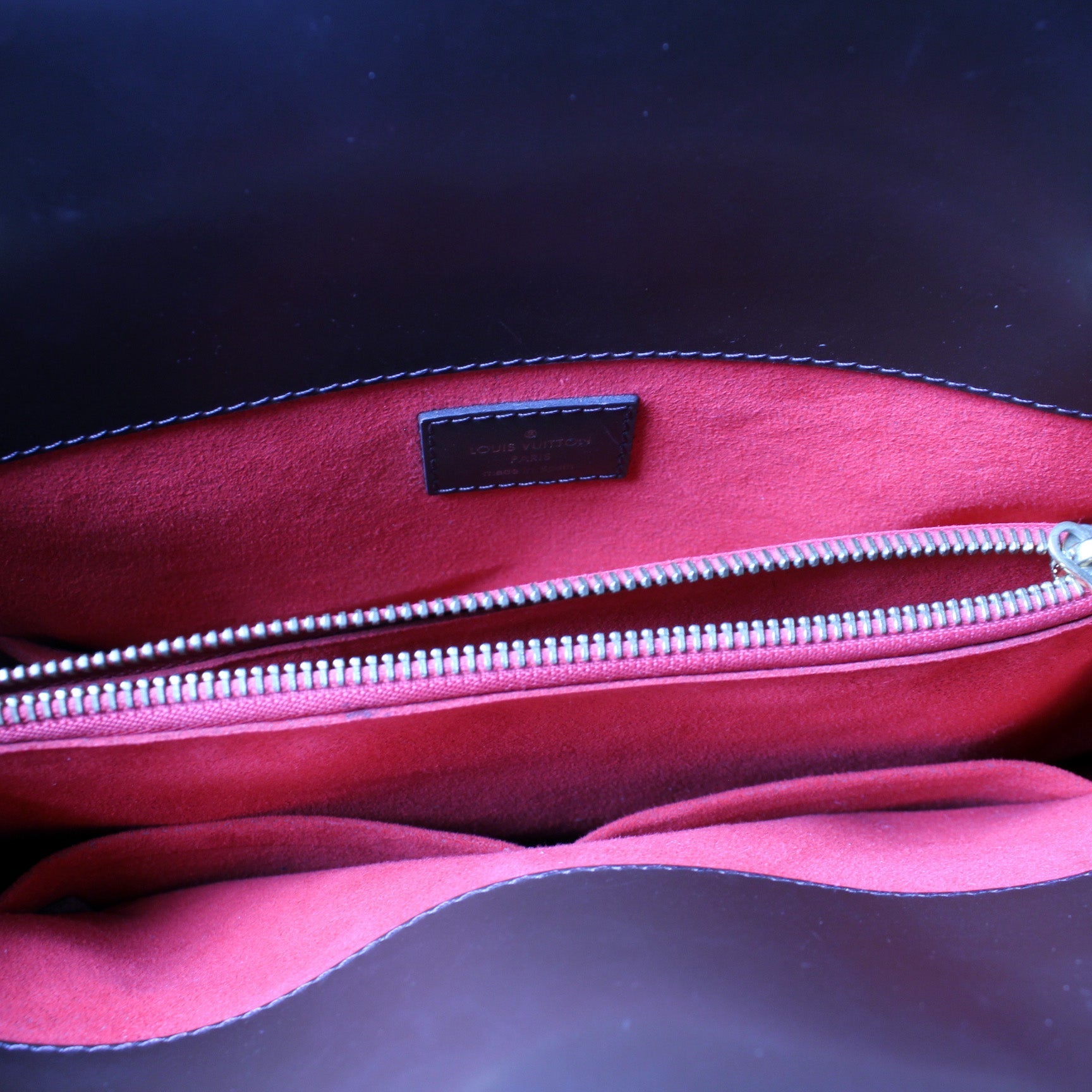 This Louis Vuitton Rivoli MM is guaranteed 100% . The exterior is in the classic Louis Vuitton Damier Ebene coated canvas.