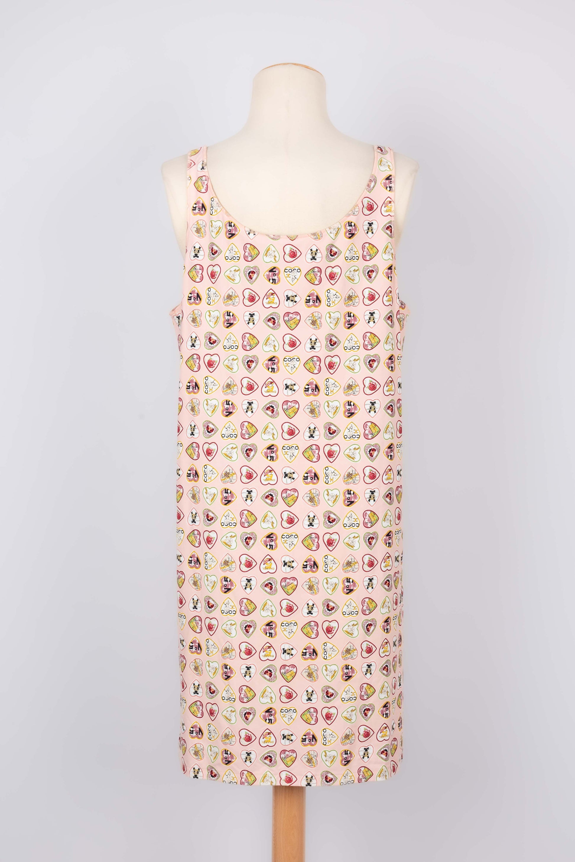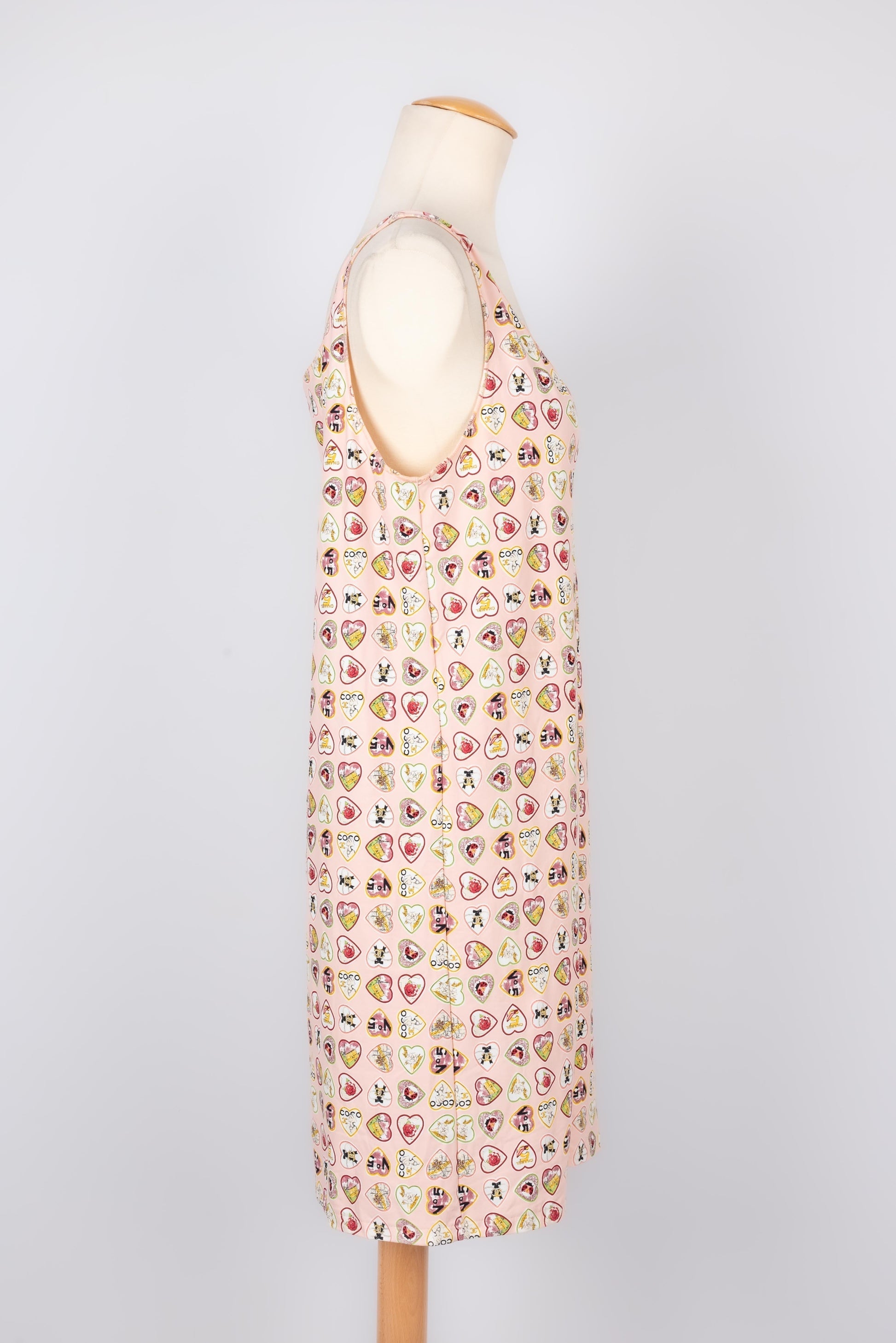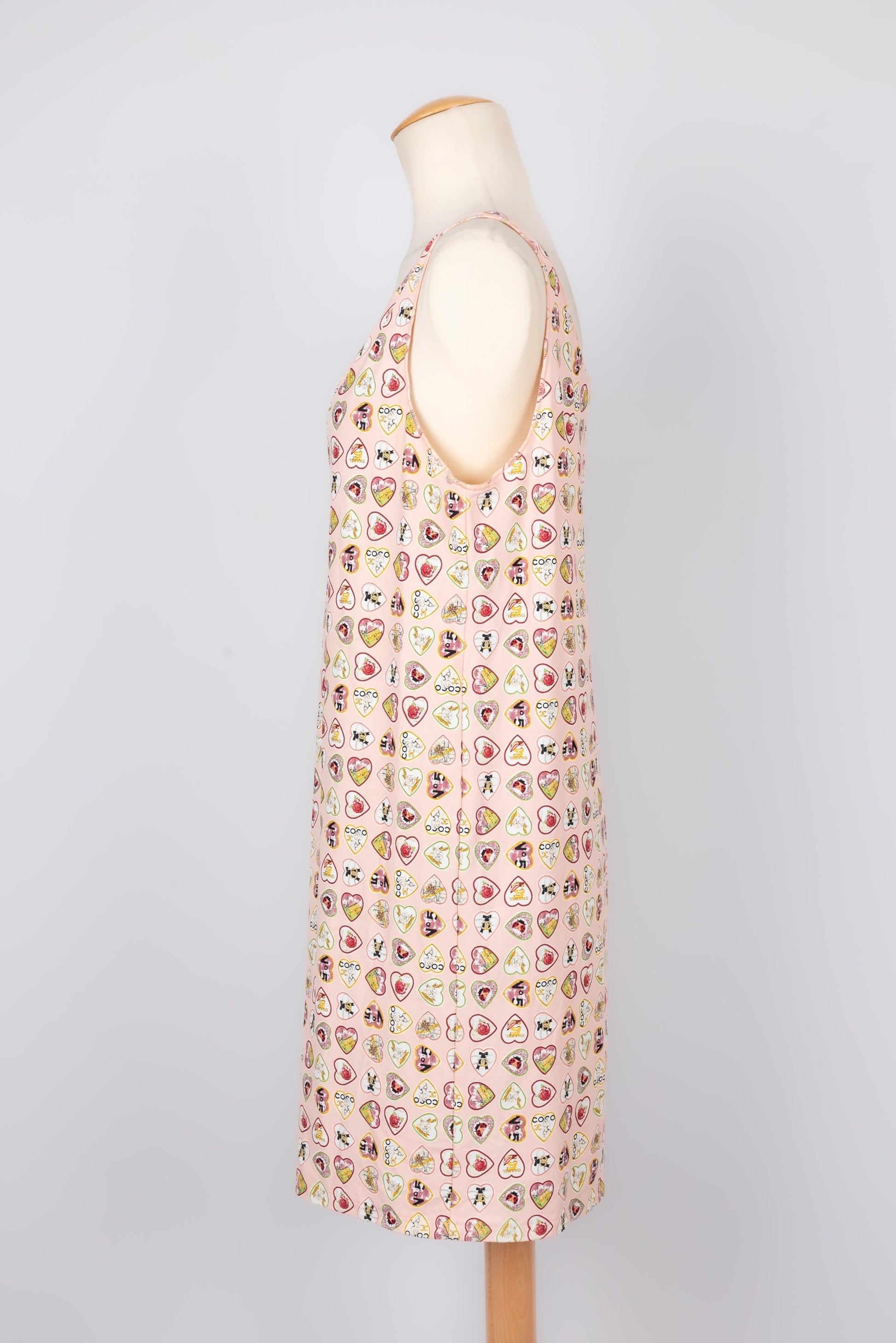 CHANEL -(Made in France) Robe imprimée de coeurs sur fond rose. Taille indiquée 44FR. Collection 2006.