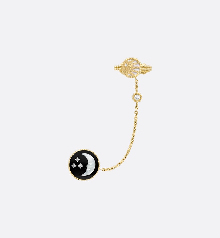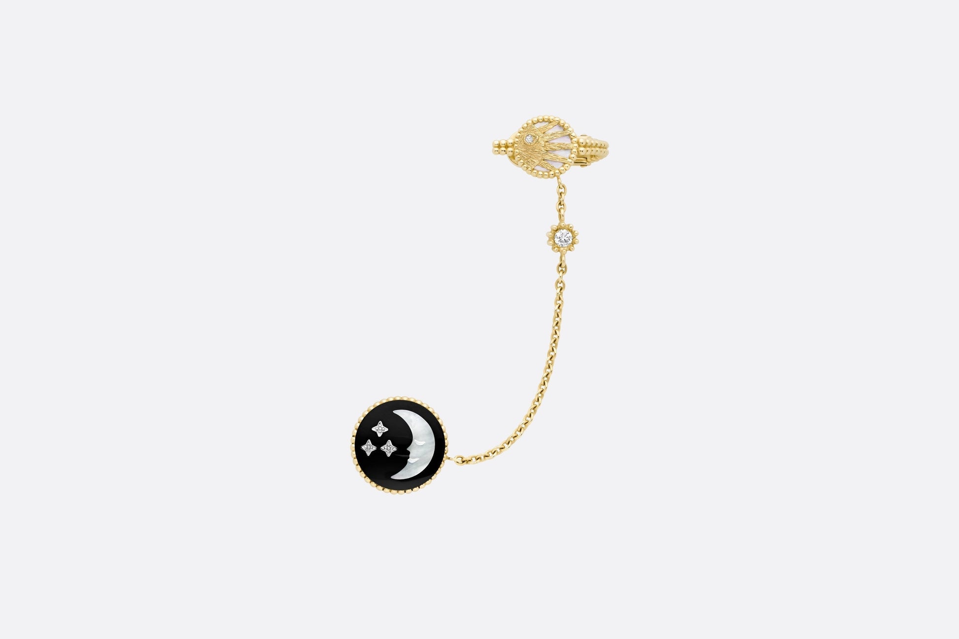 Enhanced by a sparkling diamond from the Mimirose collection, the Rose Céleste earring combines sun and moon motifs. The chain drapes delicately along the ear and can be worn at different levels thanks to the adjustable clip.