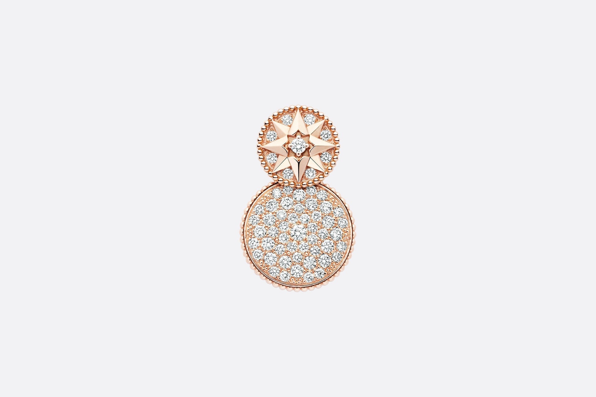 The Rose des Vents Tribale earring by Victoire de Castellane is composed of a round wind rose accompanied by a removable pendant that offers endless pairing options. Worn alone or with the reversible pendant displaying the wind rose or gemstone side, this piece inspires unique styling options for every wearer.