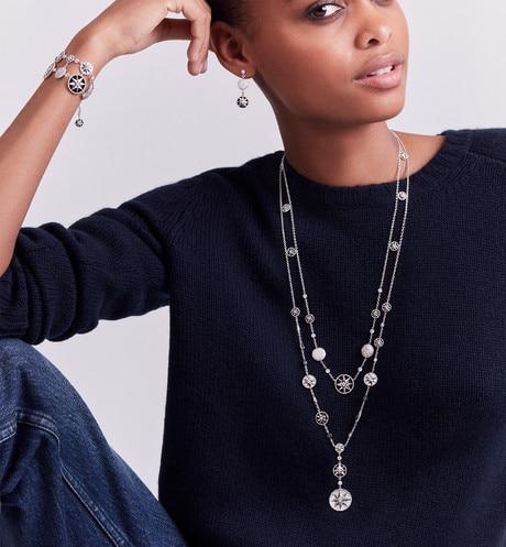 Victoire de Castellane offers a new take on Mr. Dior's lucky star in the form of a wind rose, an eight-pointed star design. A twist of grains encircles the medallions, which turn on their chain to switch between the gemstone or wind rose side.