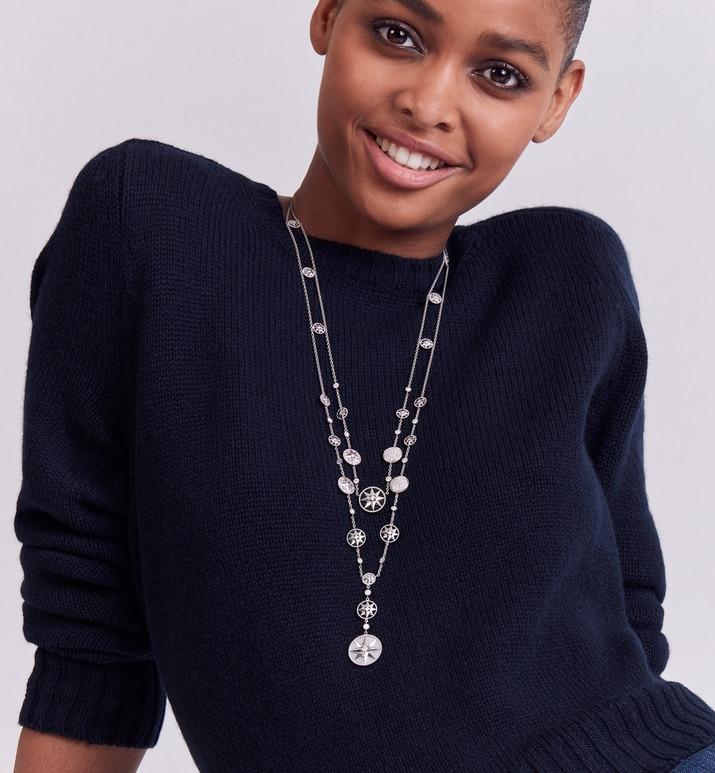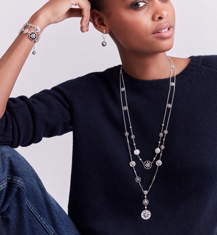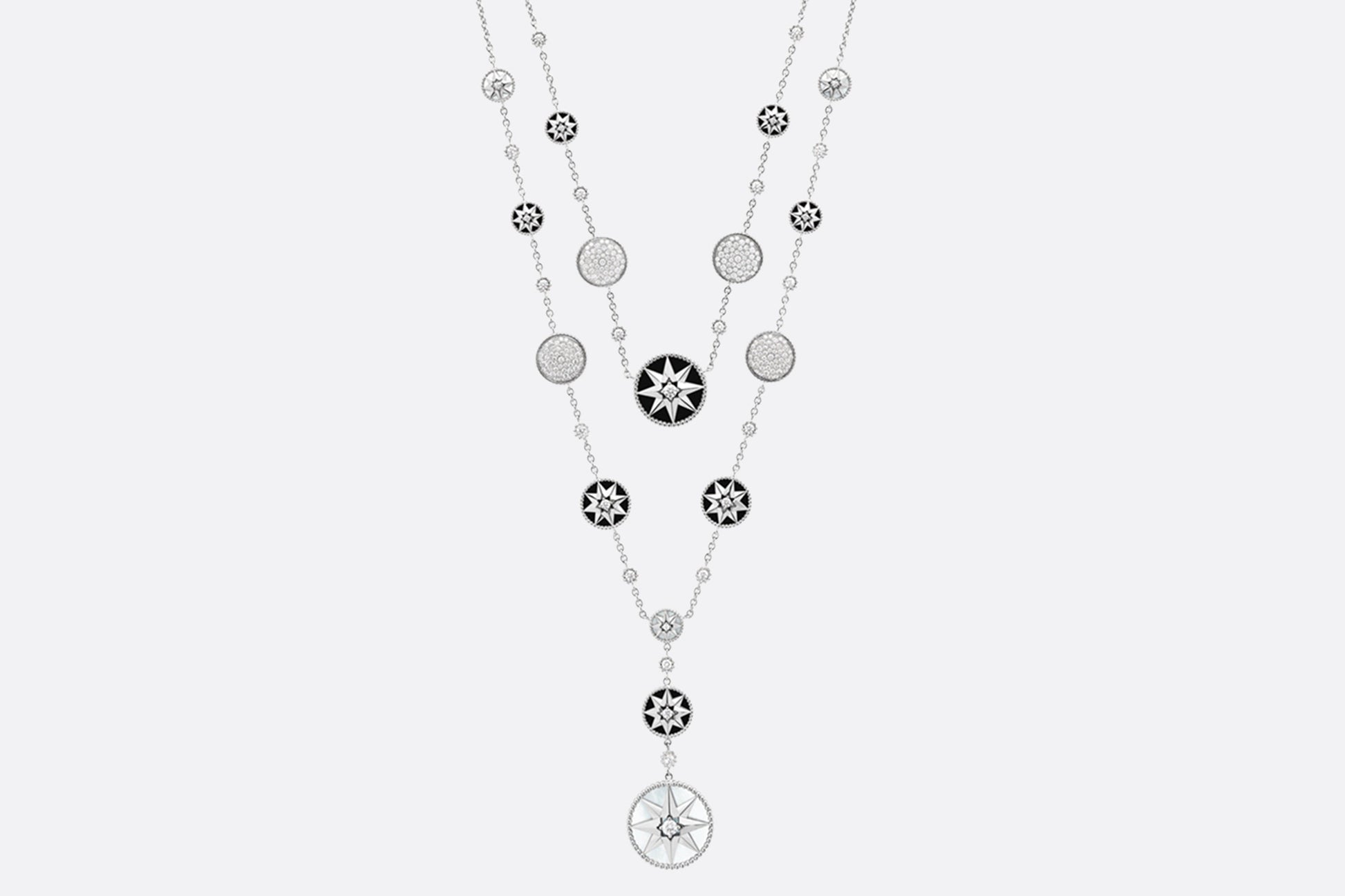 Rose Des Vents Long Necklace • 18K White Gold, Diamonds, Mother-of-Pearl and Onyx
