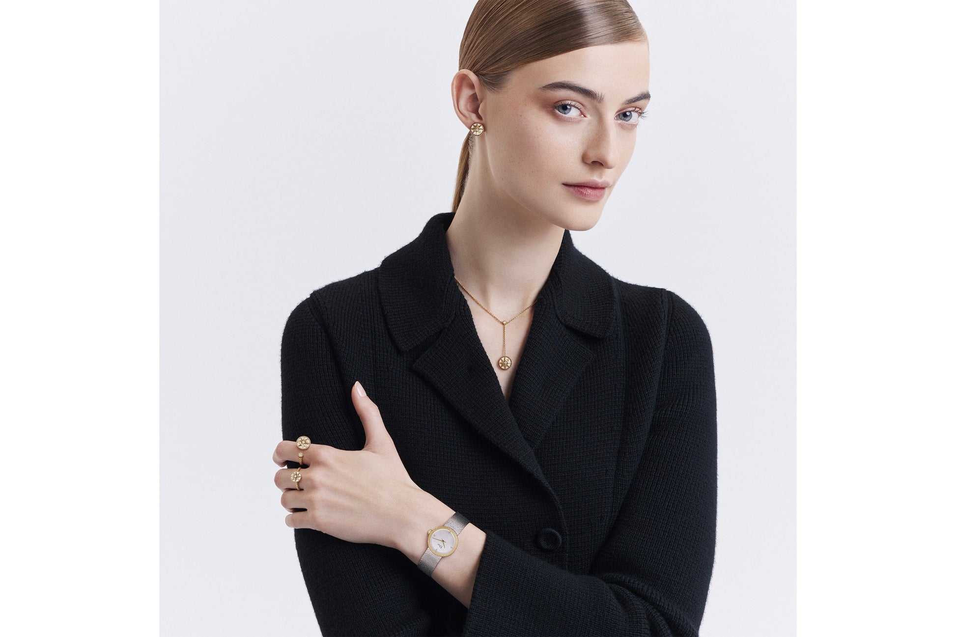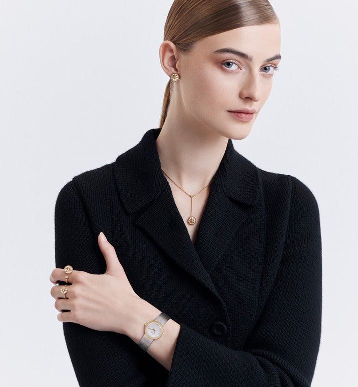 Victoire de Castellane reinterprets Mr. Dior's lucky star in the form of a wind rose, an eight-pointed star design. A twist of grains encircles the motif, which turns to switch between the gemstone or wind rose side.