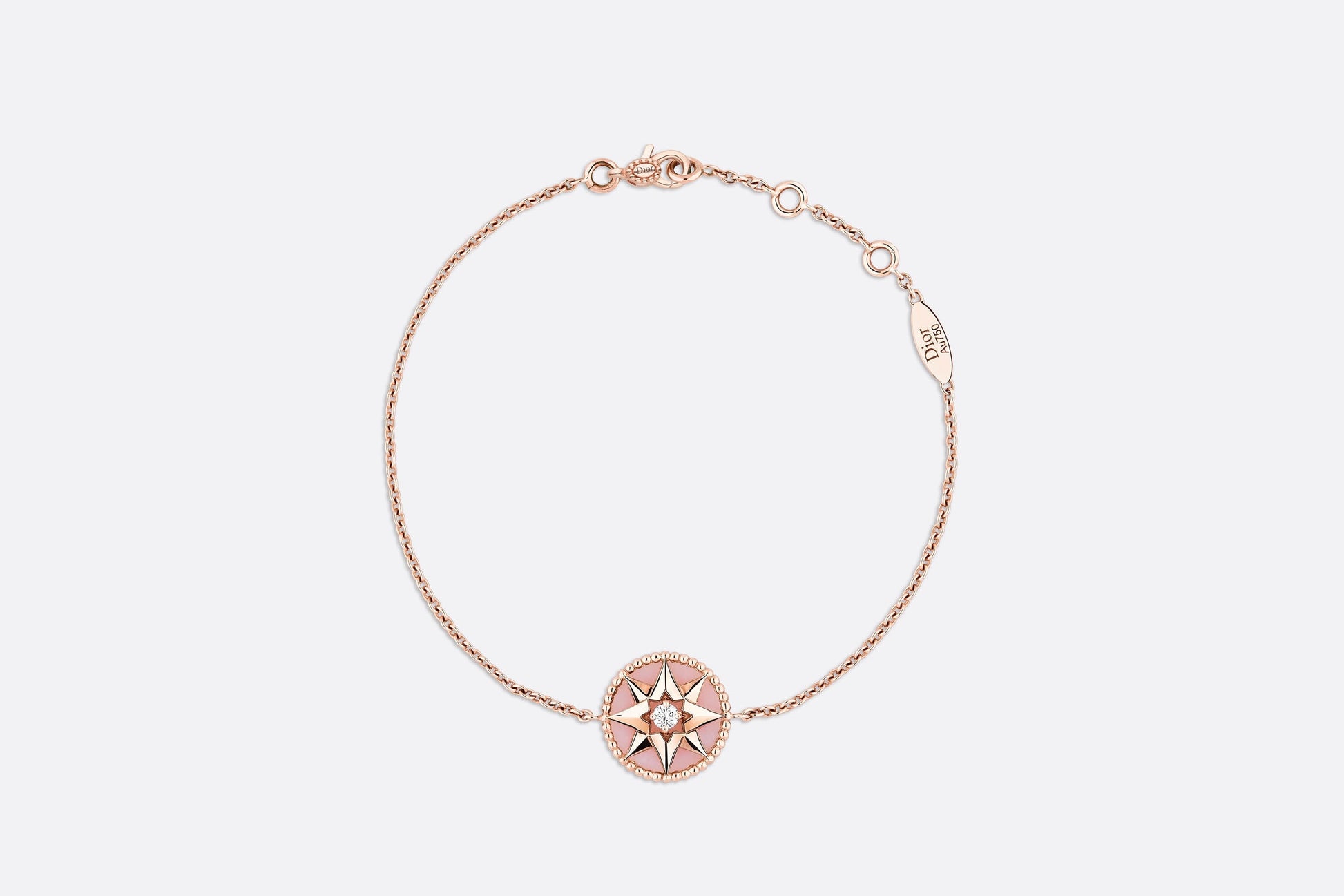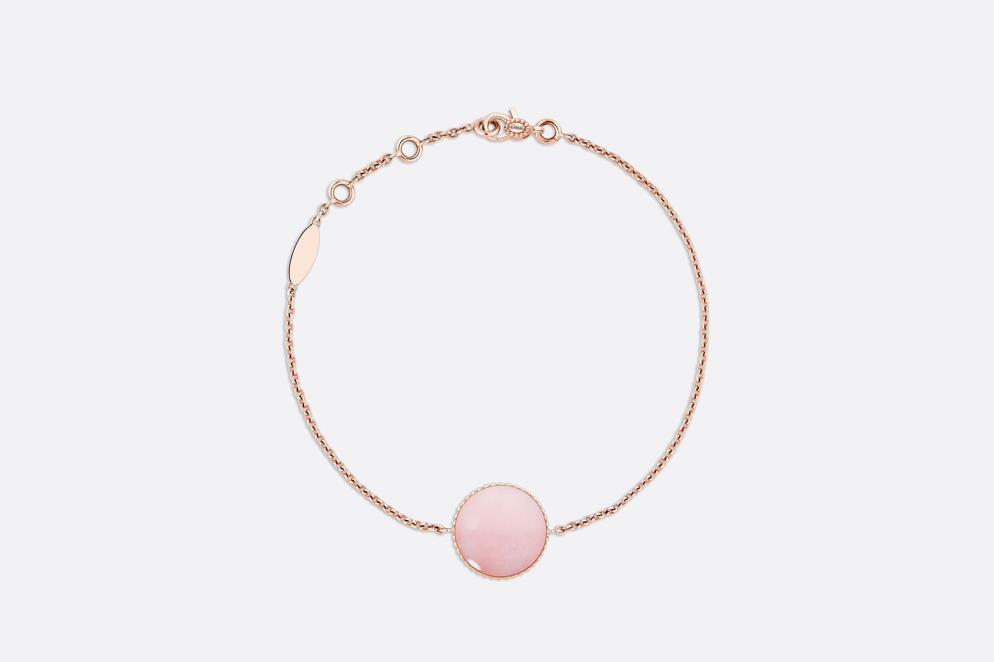 18K rose gold Diamond (0.045 ct*) Pink opal 17.5 cm in length with small rings to adjust the chain to either 15.5 cm or 16.5 cm Motif diameter: 12 mm