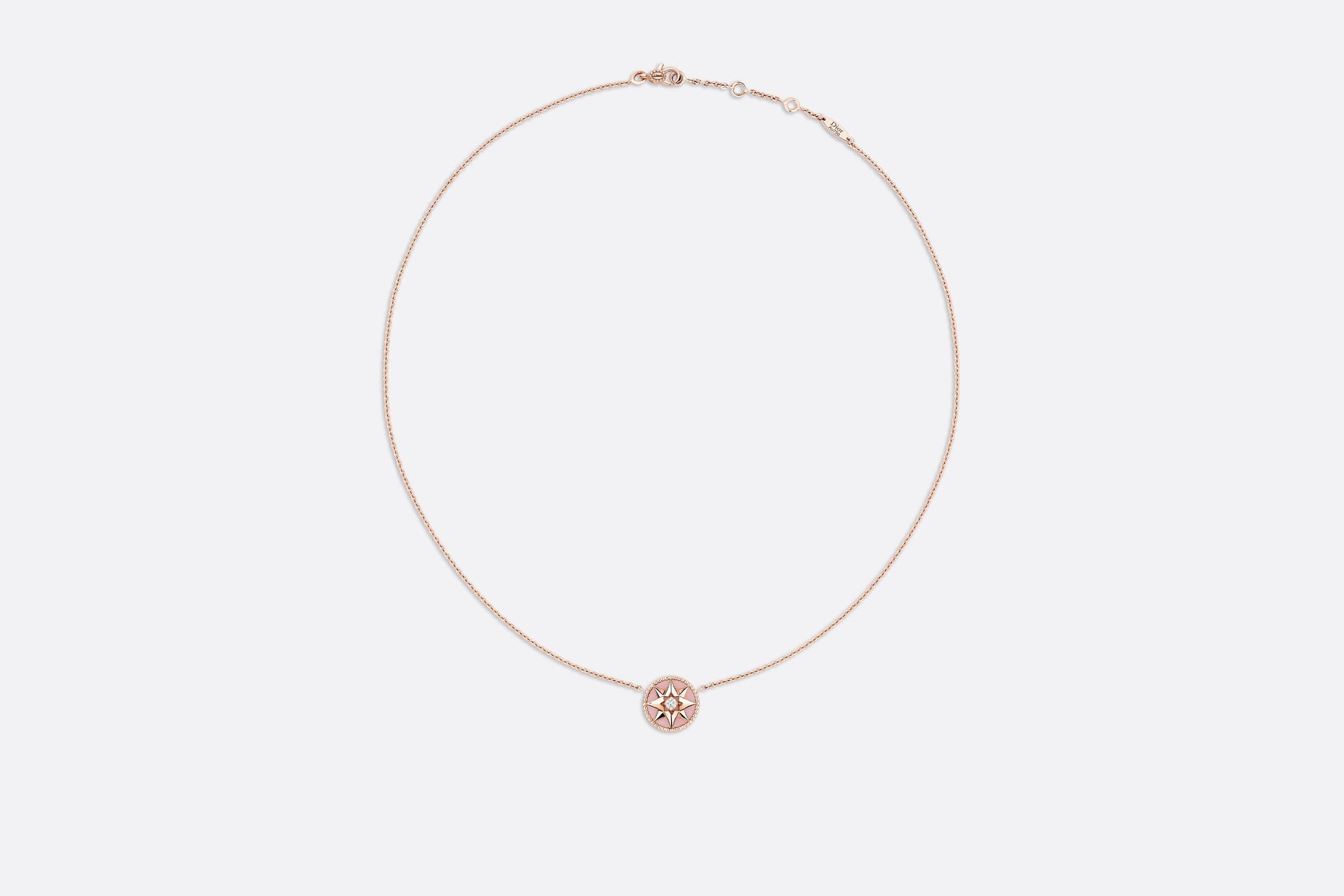 18K rose gold Diamond (0.045 ct*) Pink opal 42 cm in length with small rings to adjust the chain to either 38 cm or 40 cm Motif diameter: 12 mm