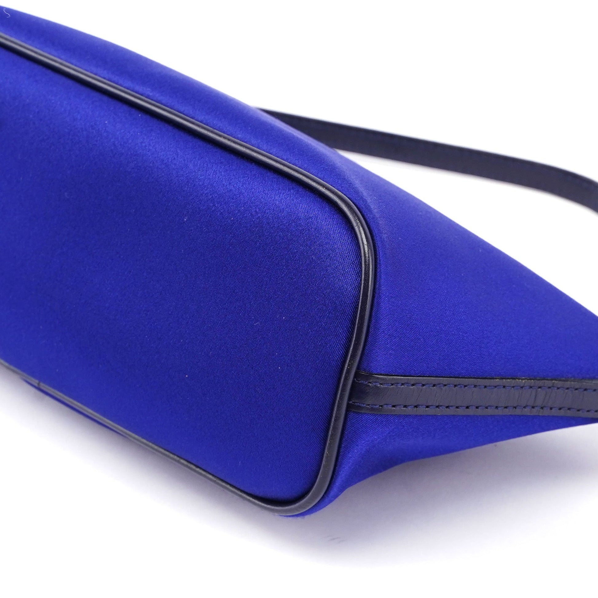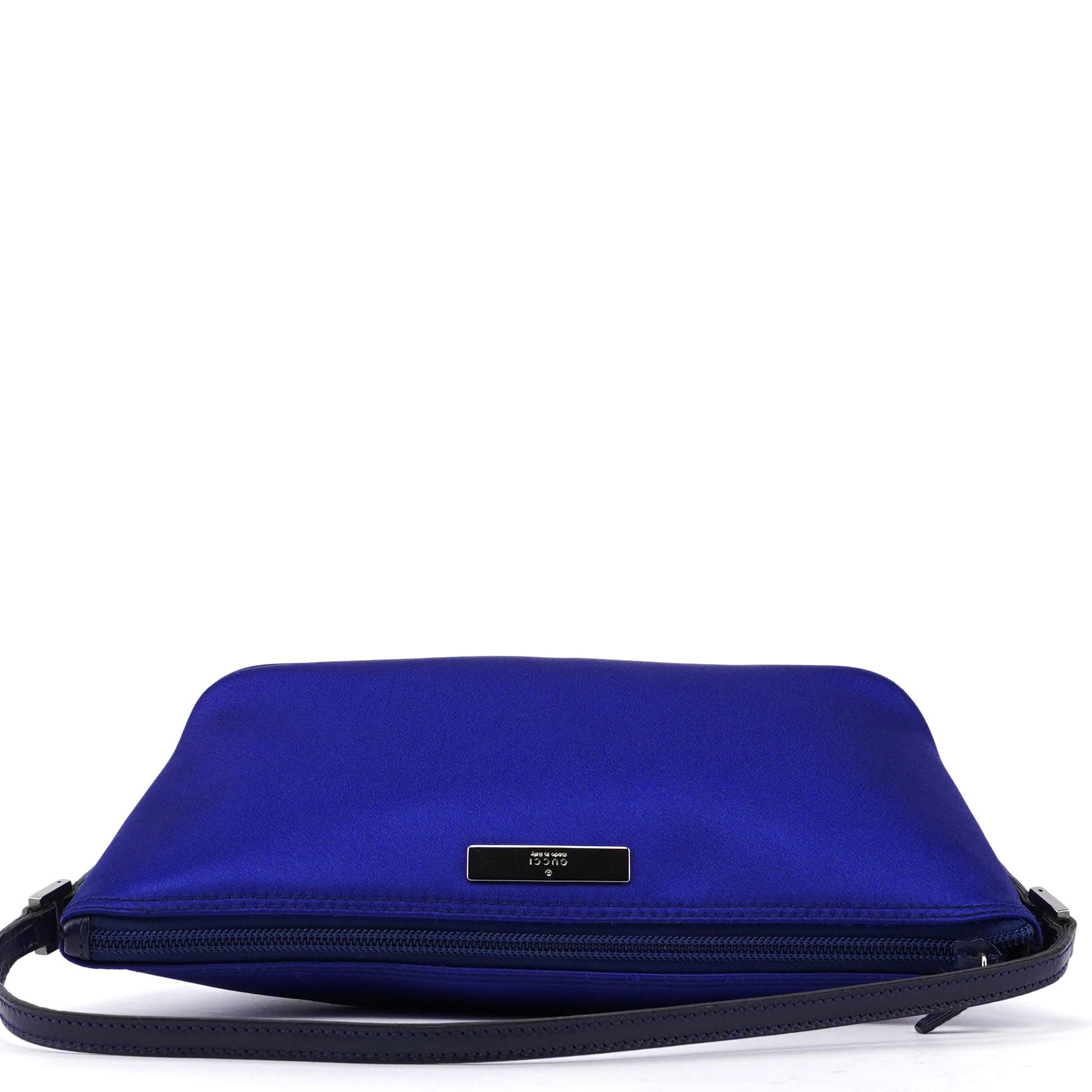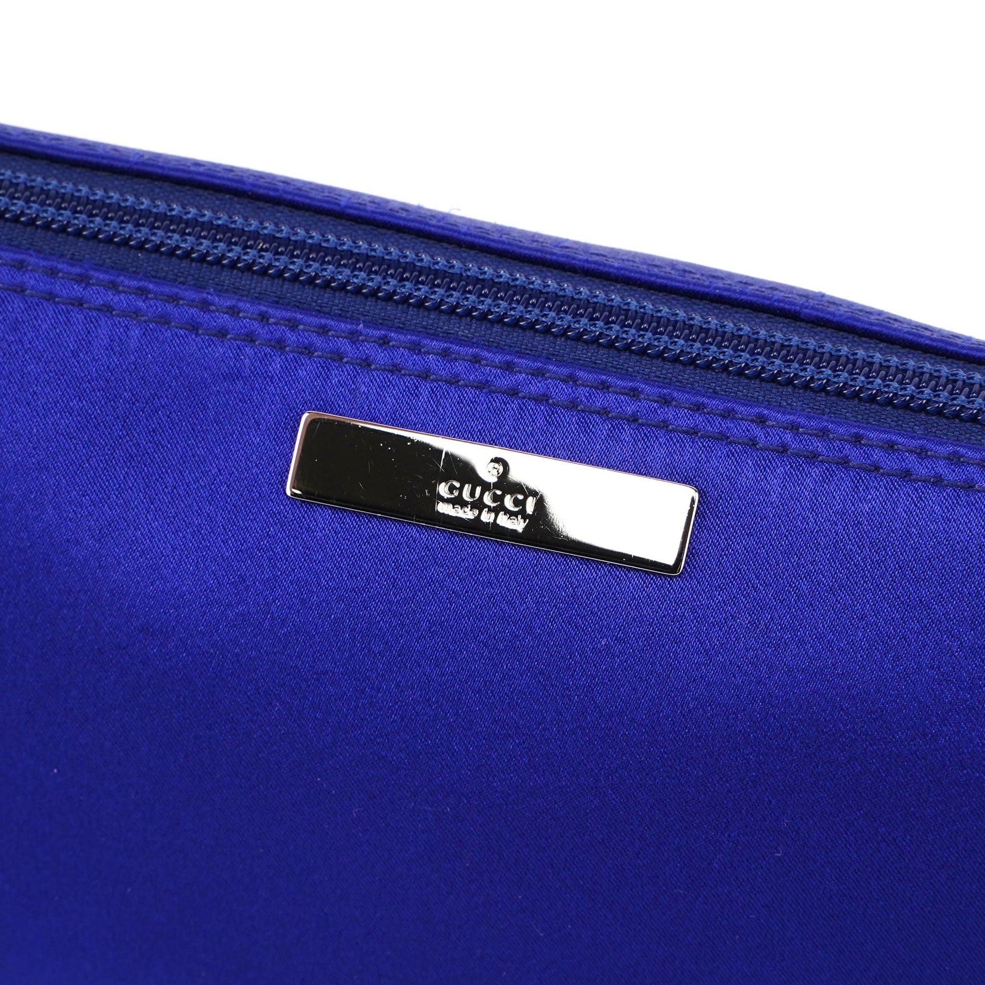 Explore timeless elegance with the Gucci boat pochette by Tom Ford, circa late 1990s. This exquisite piece combines royal blue satin with tonal calfskin leather trim and silver-tone hardware. Its secure zip closure and satin-lined interior offer luxury and practicality, while the subtle Gucci plaque adds a touch of heritage. A perfect blend of vintage charm and sophistication.