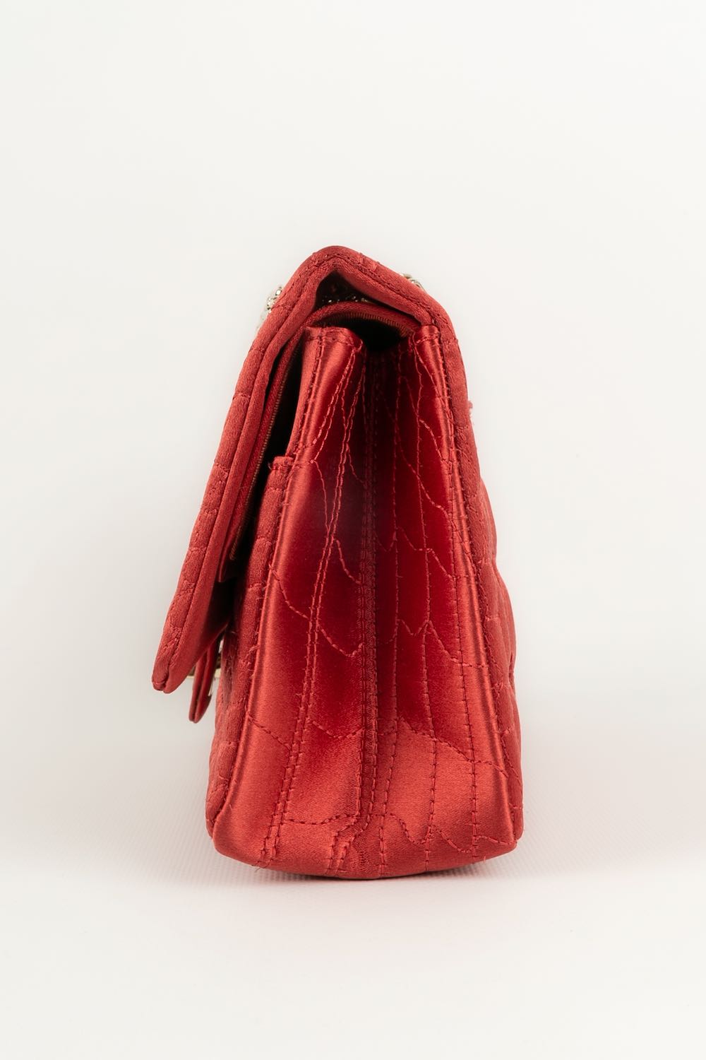 CHANEL - (Made in France) Sac en soie rouge effet cuir exotique. Attributs en métal doré. Collection 2008/2009