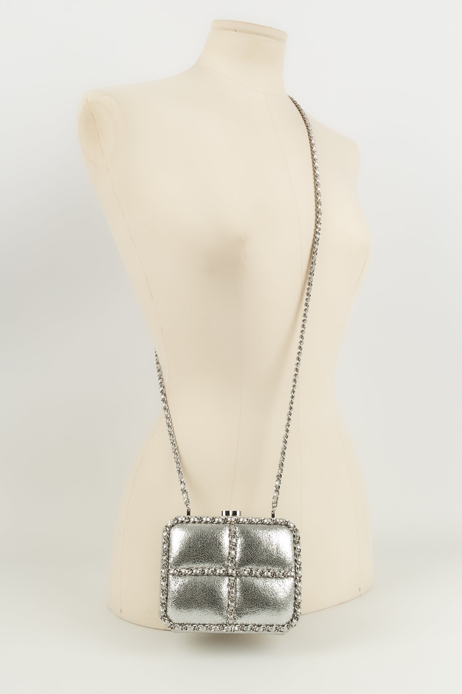 CHANEL -(Made in Italy) Sac à bandoulière en cuir et métal argenté. Collection 2011.