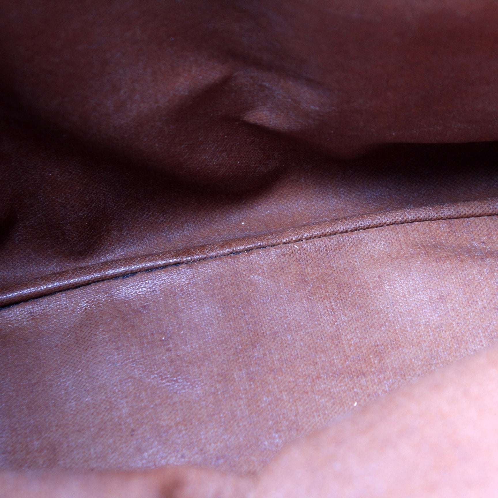 Interior: The interior is free of rips or tears. The interior features one zip closure pocket. There is discoloration throughout the interior fabric.