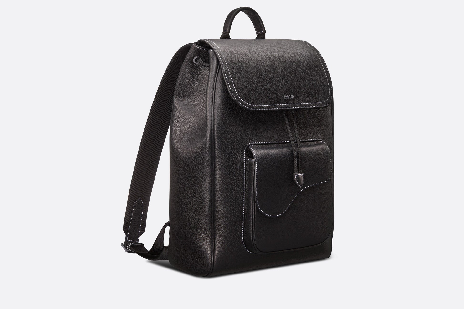 The Saddle backpack offers a modern and original take on the Saddle design. The black grained calfskin with contrasting topstitching is embellished with a Dior signature on the front. The spacious design has a compartment to hold all the essentials, while the Saddle flap pocket on the front offers easy access to a wallet, keys, headphones or phone. The practical backpack will lend the finishing touch to any outfit.