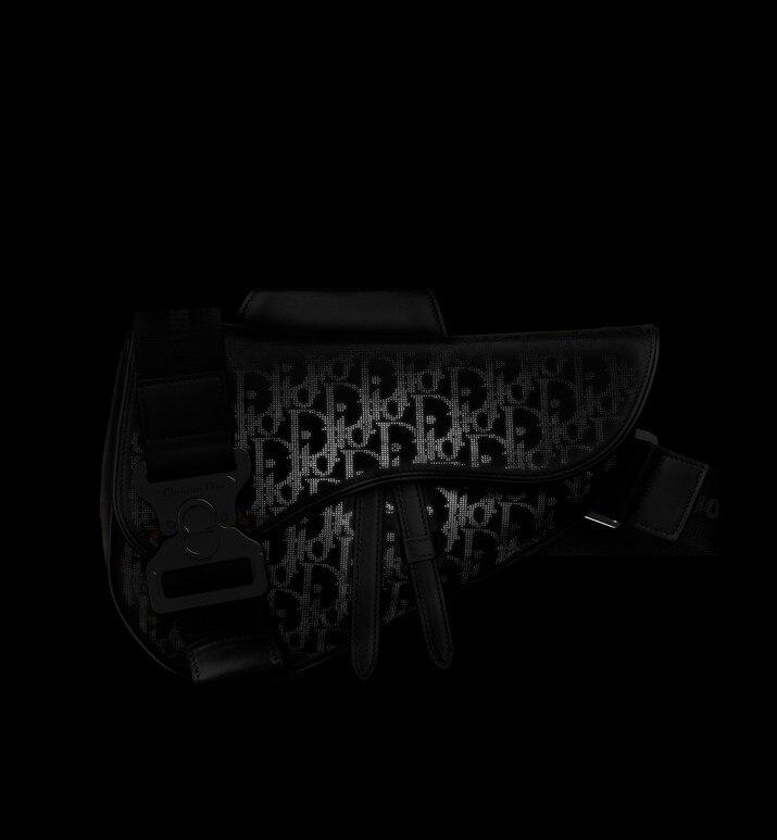 An excellent example of the House's unique leather craftsmanship, the Saddle bag presents a black Dior Oblique Galaxy leather, a smooth calfskin perforated with the Dior Oblique motif and embellished with a reflective lining. The magnetic back, with its iconic lines, conceals a zipped closure to safety store all the essentials. The bag may be worn over the shoulder or crossbody with its adjustable 'Christian Dior' jacquard shoulder strap.
