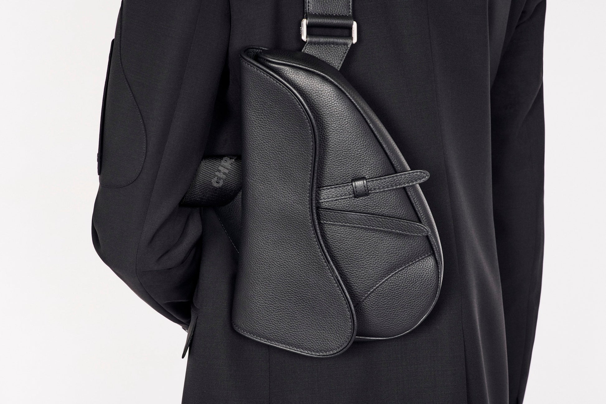 Black grained calfskin Saddle bag with Christian Dior buckle detail.