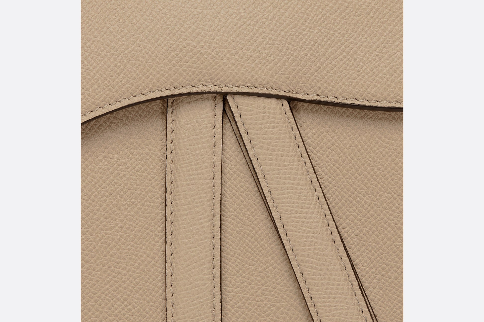 Maria Grazia Chiuri brings a fresh update to the iconic Saddle bag. Crafted in sand-colored grained calfskin, the legendary design presents a Saddle flap with a magnetic D stirrup clasp, as well as an antique gold-finish metal CD signature on either side of the strap. Featuring a thin, adjustable and removable shoulder strap, the Saddle bag may be carried by hand, worn over the shoulder or crossbody.