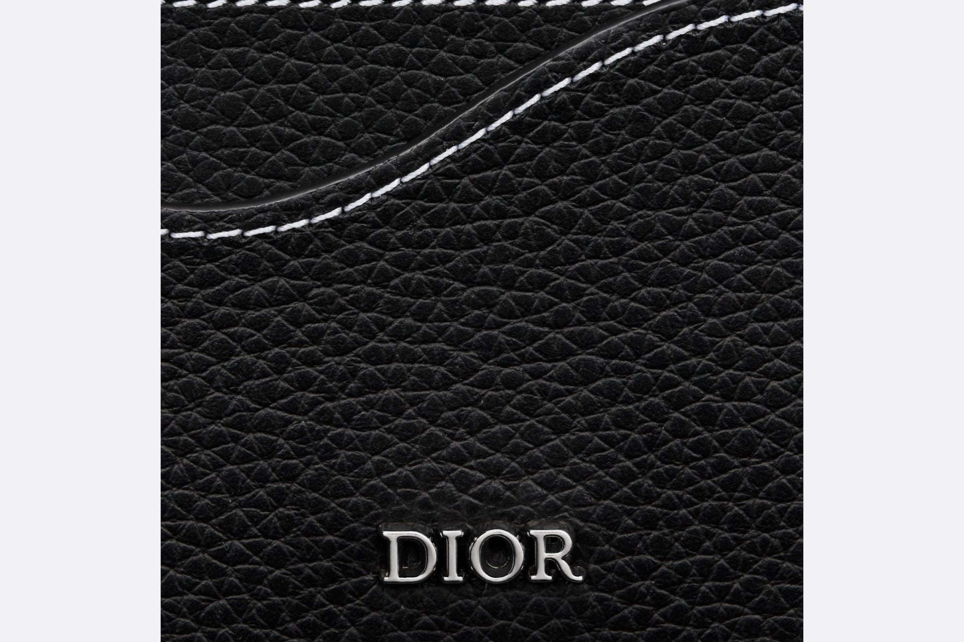 New for Fall 2023, the Saddle card holder is a refined accessory that demonstrates the House's savoir-faire. Crafted in black grained calfskin with contrasting topstitching that highlights the Saddle line's iconic silhouette, it features three slots on either side and a top slot to store all personal effects. Further embellished with a ruthenium-finish brass Dior signature on the front, the elegant card holder will slip easily into any pocket.