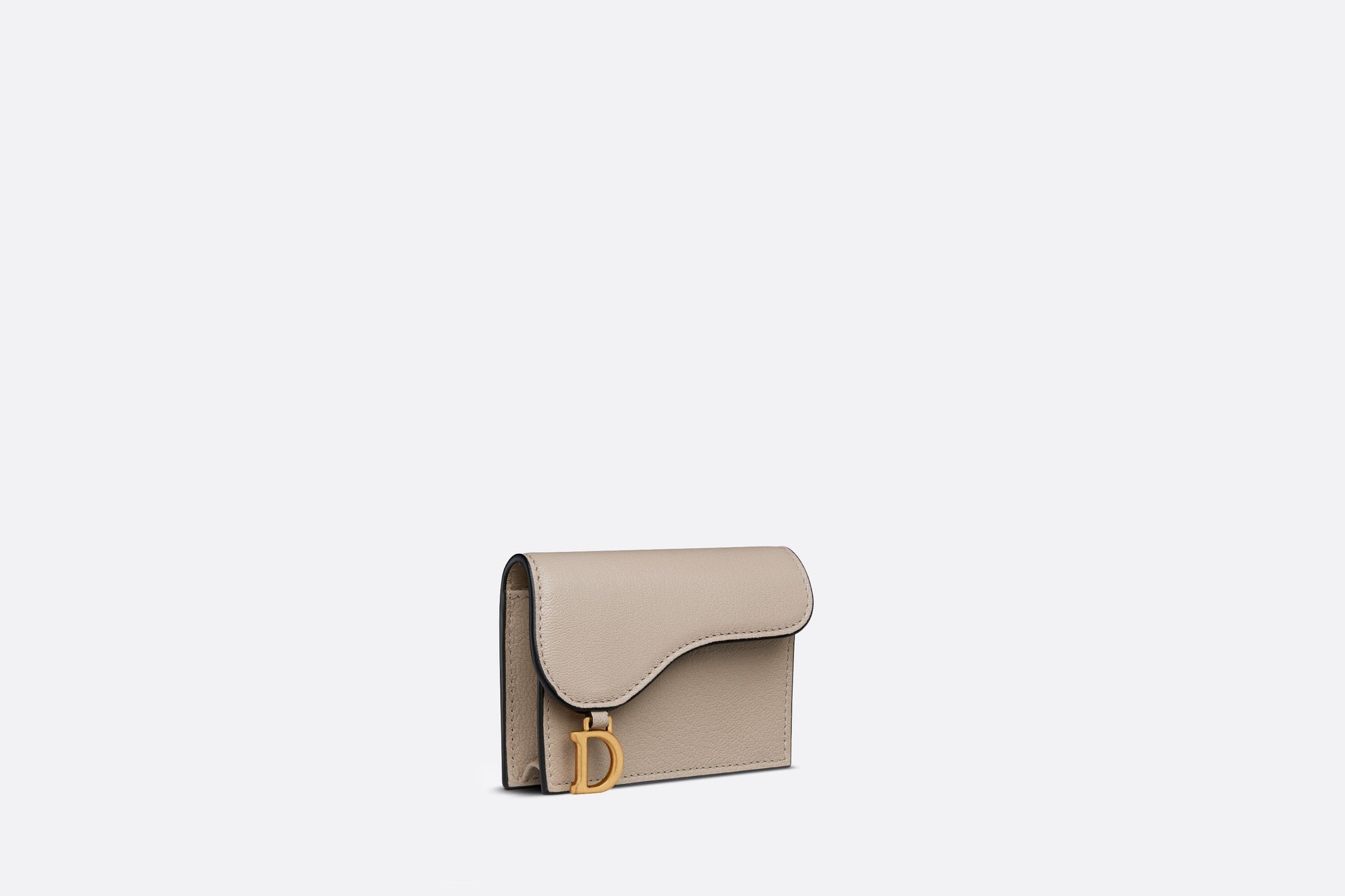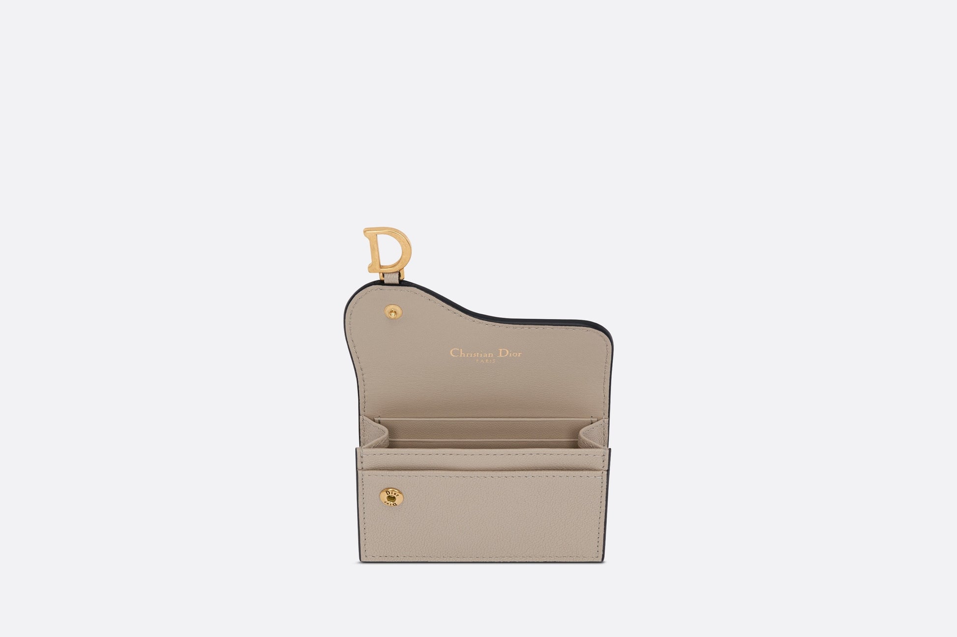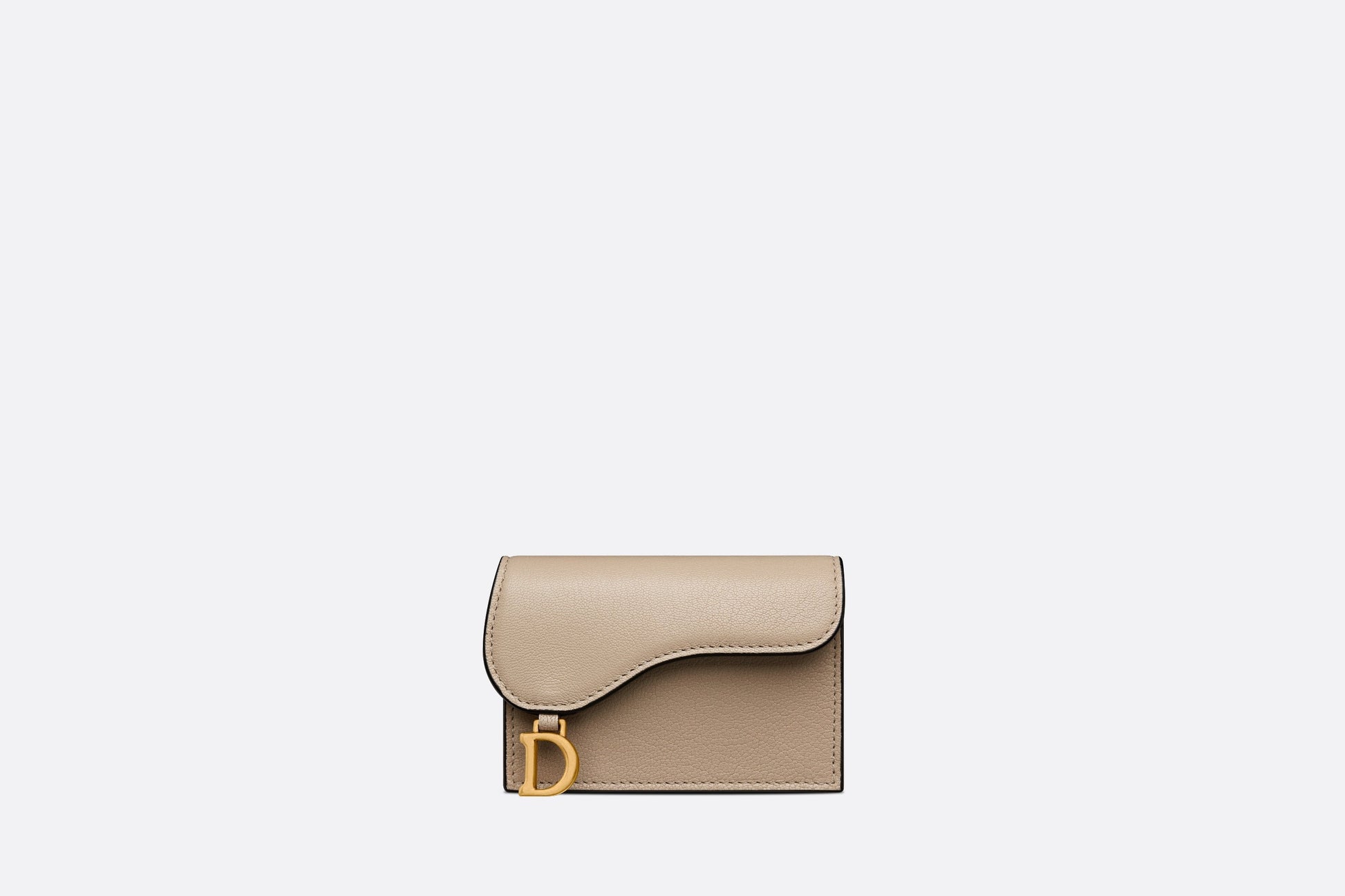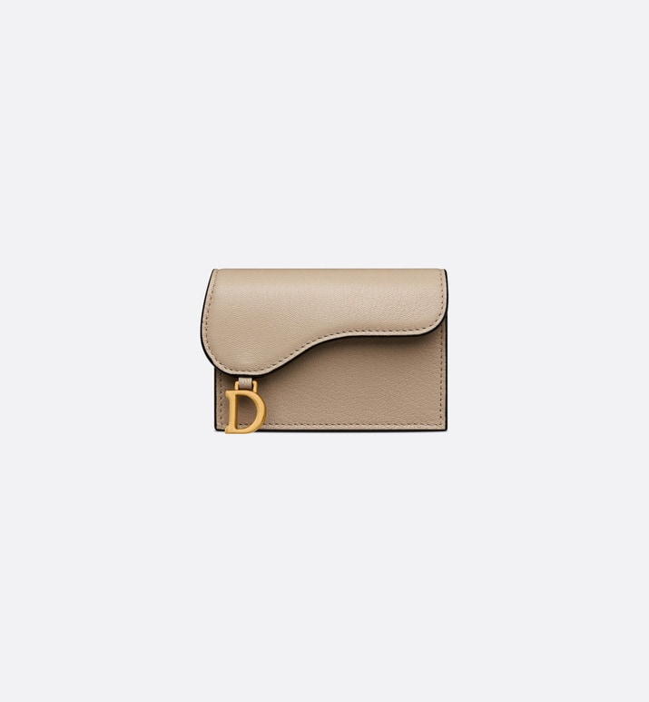 The Saddle flap card holder is a compact and practical alternative to the traditional wallet. The design is crafted in sand-colored goatskin and can hold all the small daily essentials. The small and easy-to-use companion may be paired with the entire Saddle line.