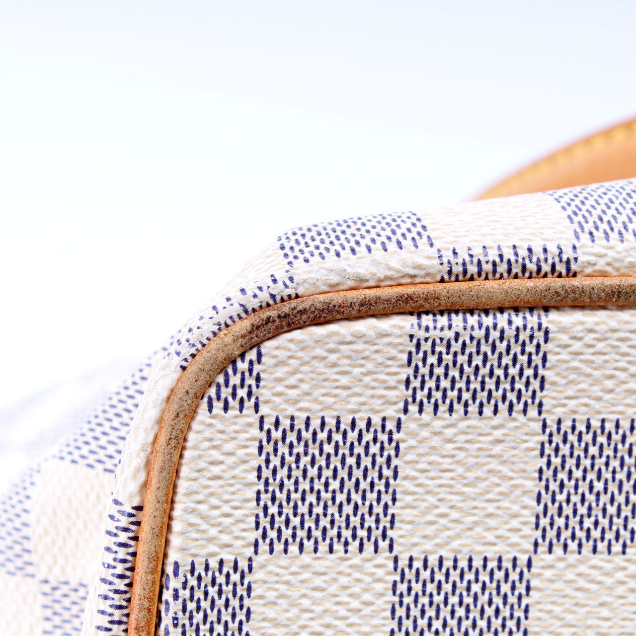 This Louis Vuitton Saleya MM is guaranteed 100% . The exterior is in the classic Louis Vuitton Damier Azur coated canvas.