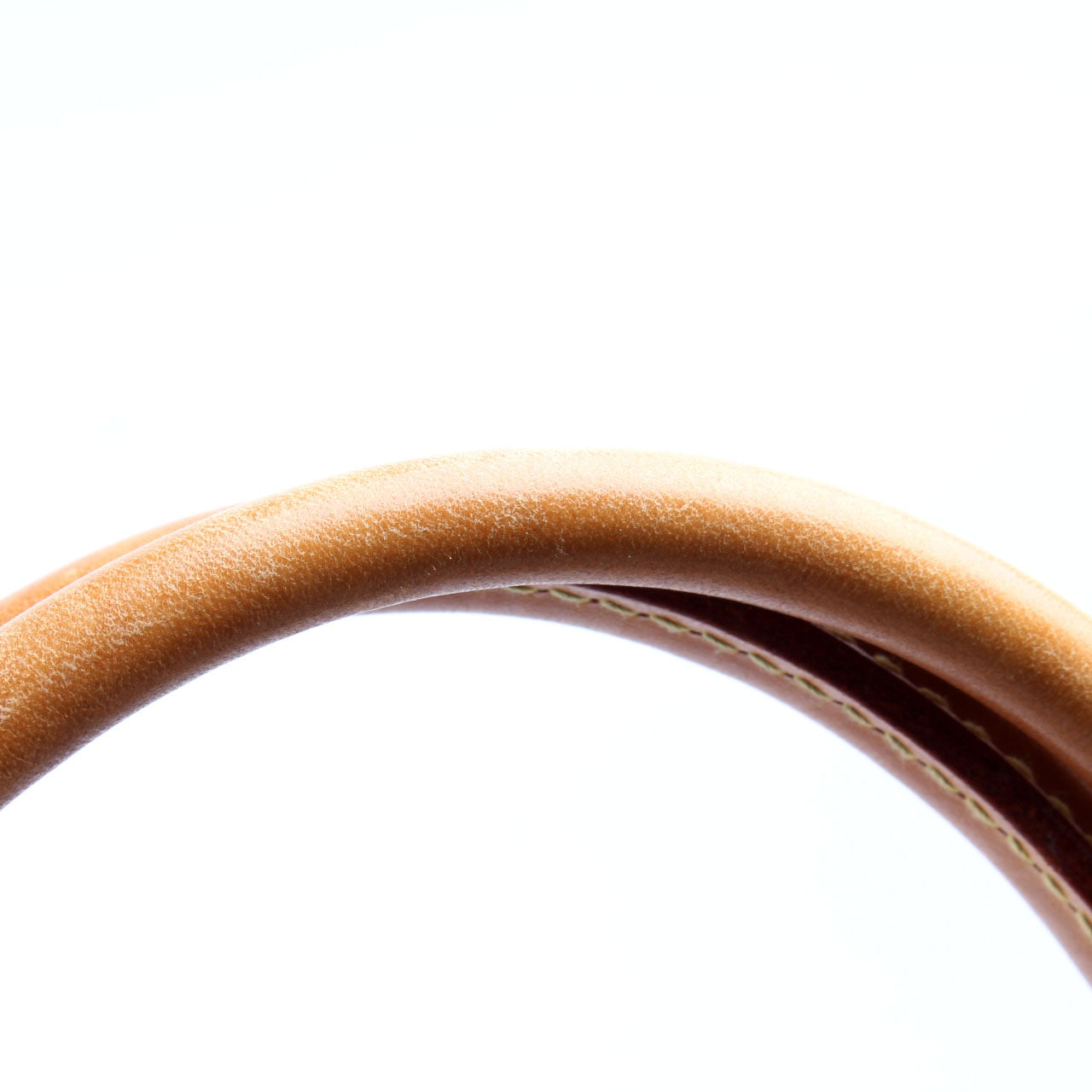 Exterior: The exterior coated canvas is free of any rips or cracks. The corners and leather details show signs of wear as pictured.