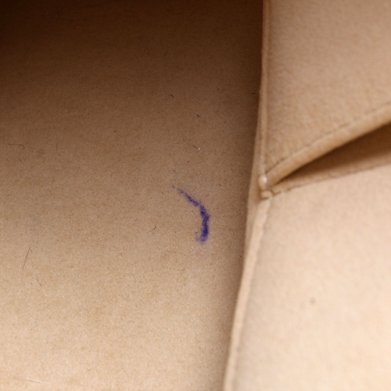 Interior: The interior is free of rips or tears. The interior features two open pockets. There is minor discoloration to the interior fabric.