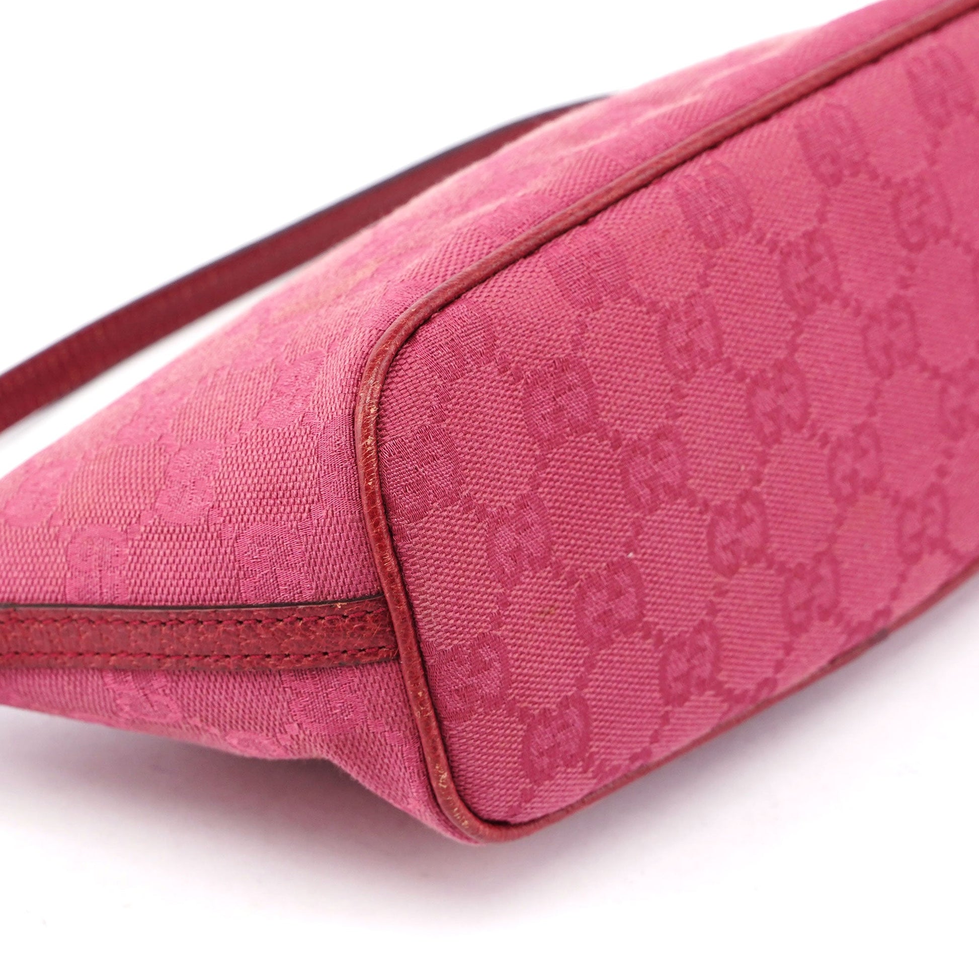 Explore timeless elegance with the Gucci GG Boat Pochette by Tom Ford, circa late 1990s. This exquisite piece combines pink GG canvas with tonal leather trim and silver-tone hardware. Its secure zip closure and satin-lined interior offer luxury and practicality, while the subtle Gucci plaque adds a touch of heritage. A perfect blend of vintage charm and sophistication.