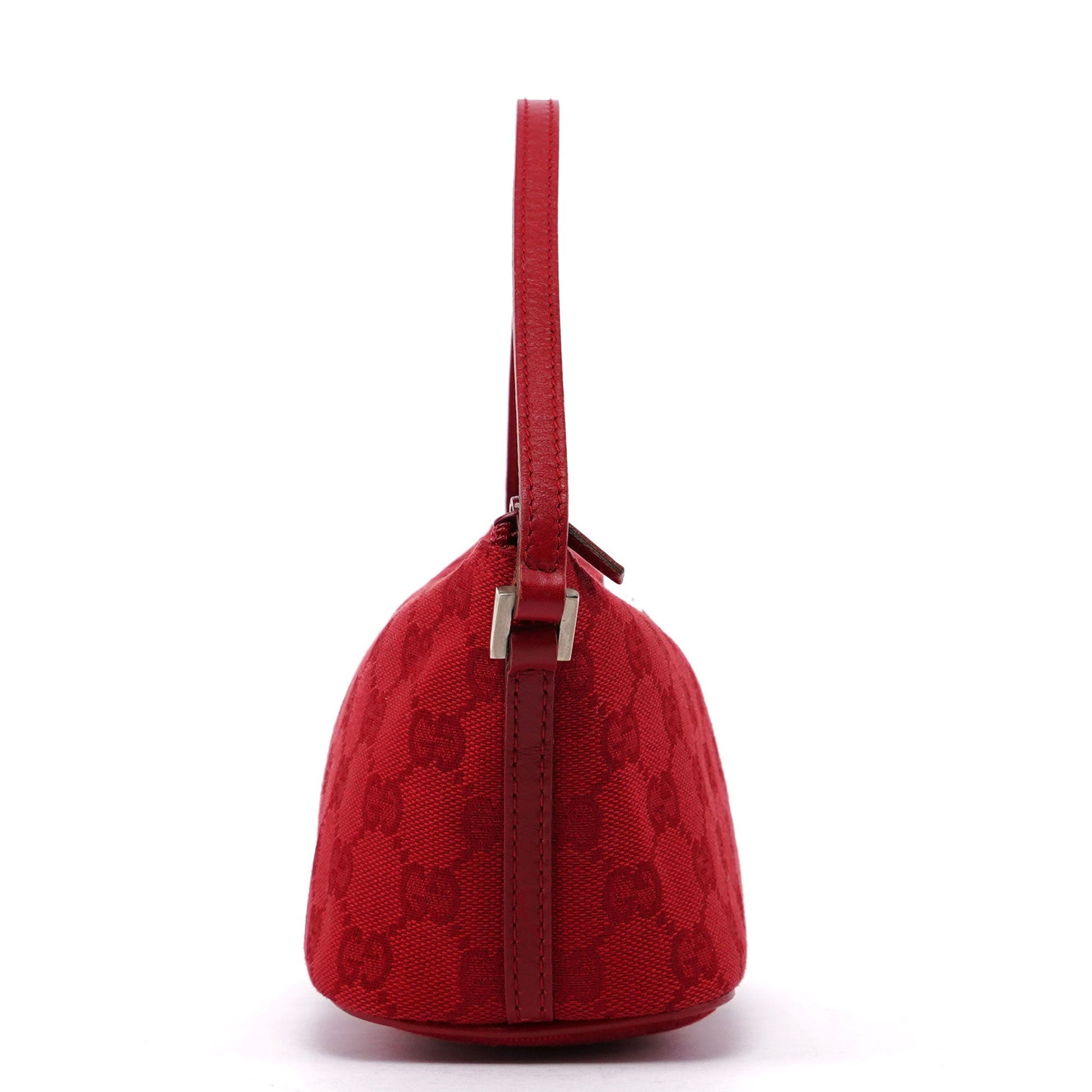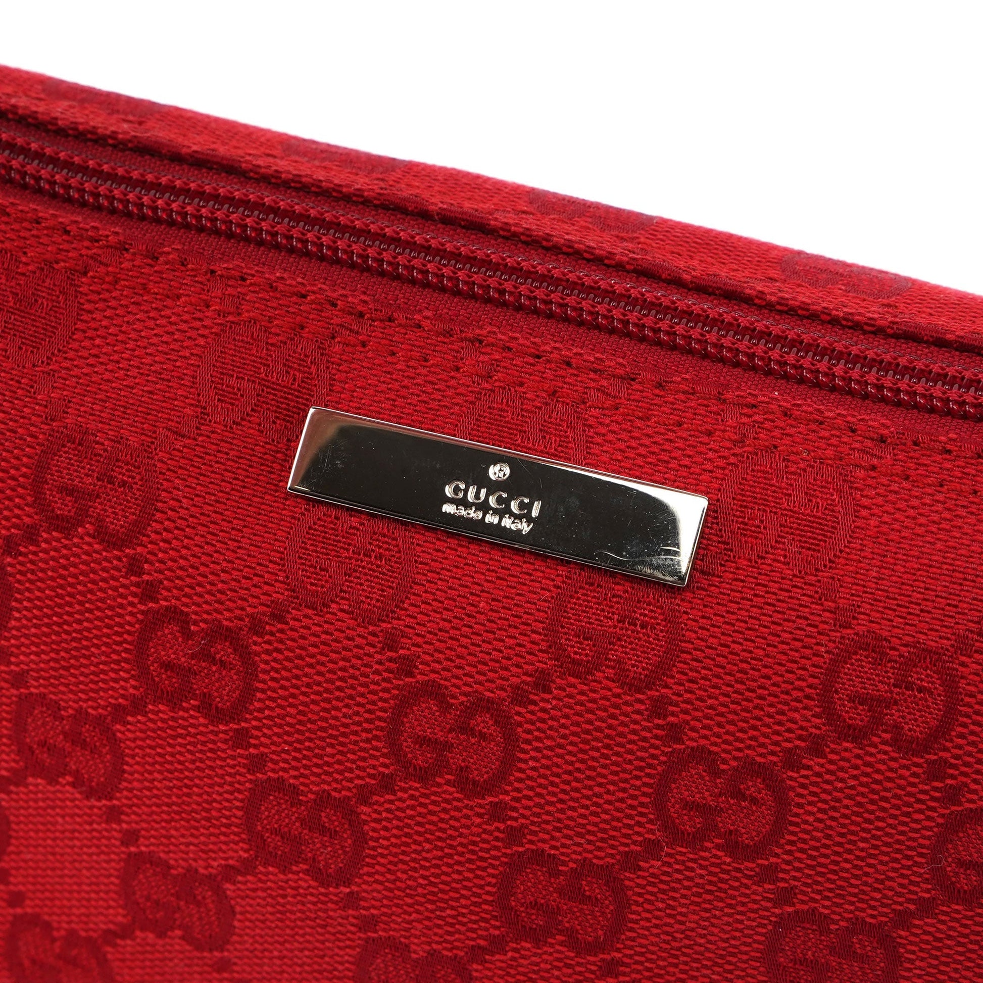 Explore timeless elegance with the Gucci GG Boat Pochette by Tom Ford, circa late 1990s. This exquisite piece combines red GG canvas with tonal leather trim and silver-tone hardware. Its secure zip closure and satin-lined interior offer luxury and practicality, while the subtle Gucci plaque adds a touch of heritage. A perfect blend of vintage charm and sophistication.